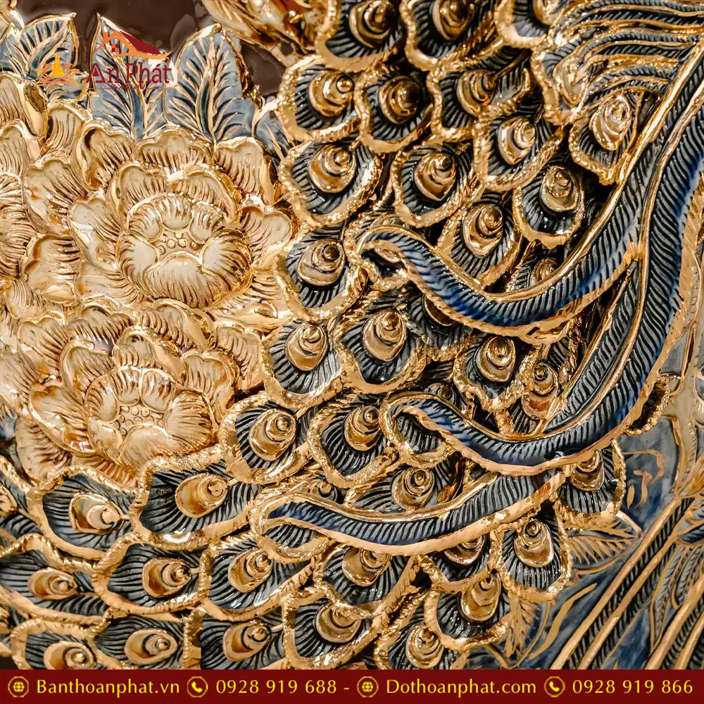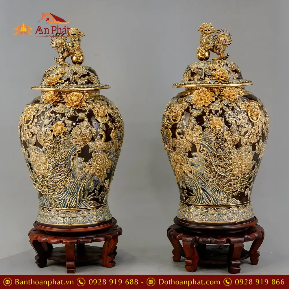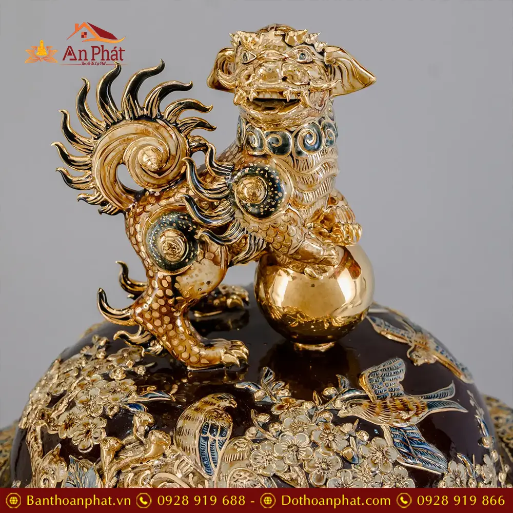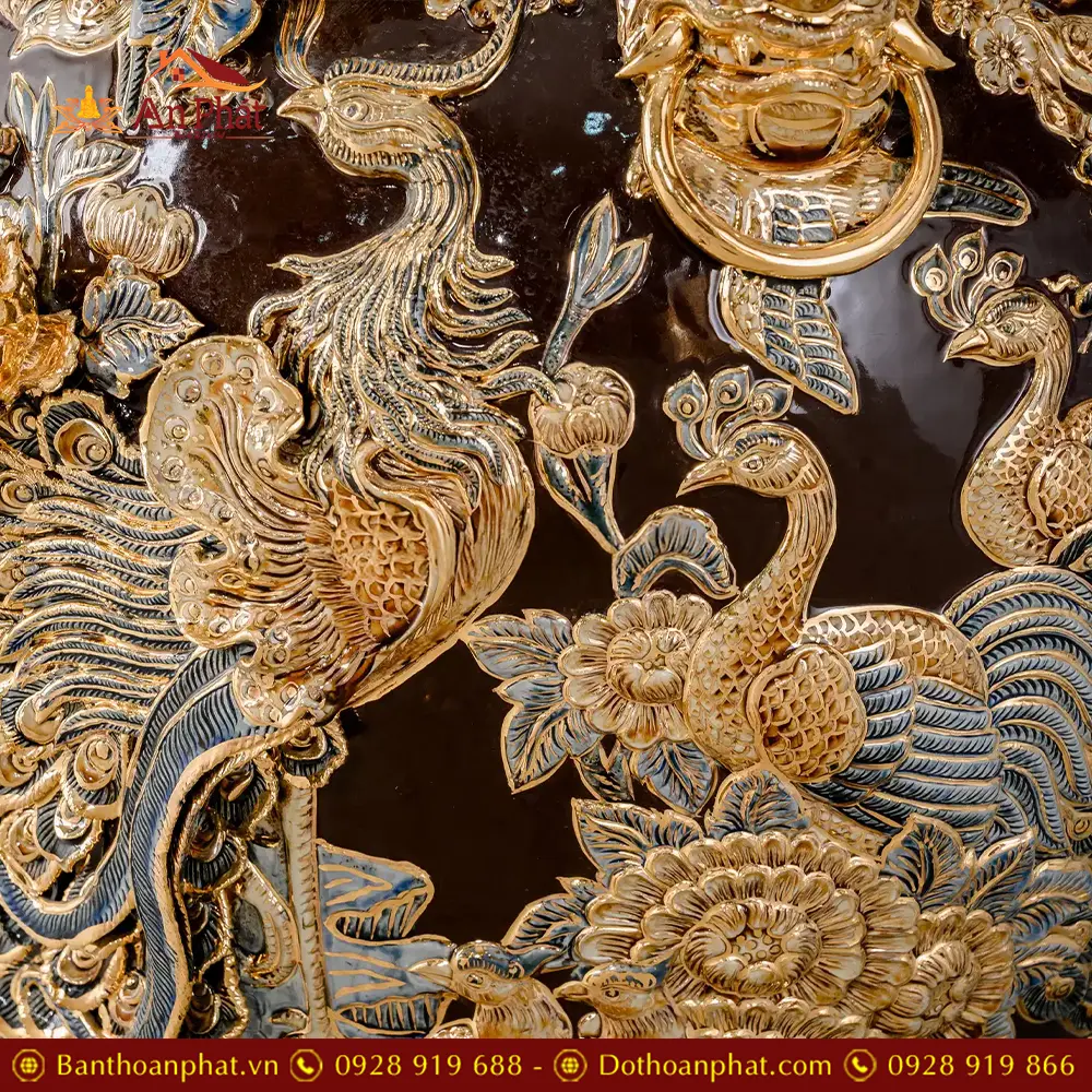 Choé Thờ Phong Thuỷ Cao Cấp Men Nâu Công Đào Vẽ Vàng DT980