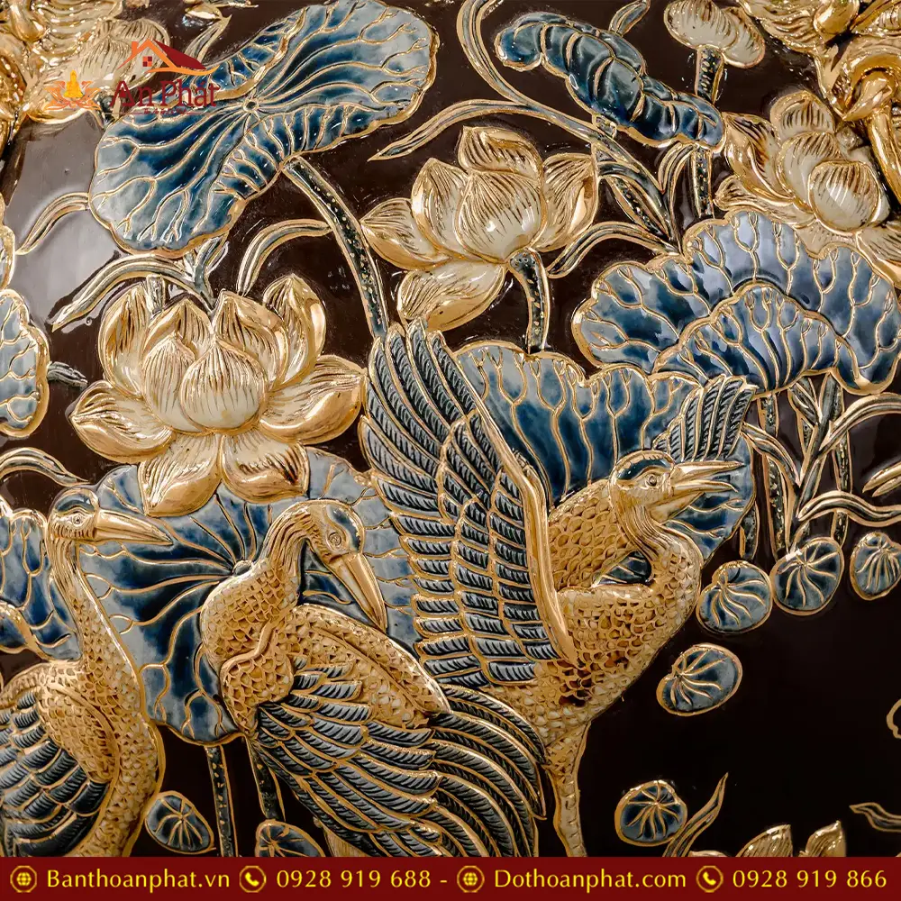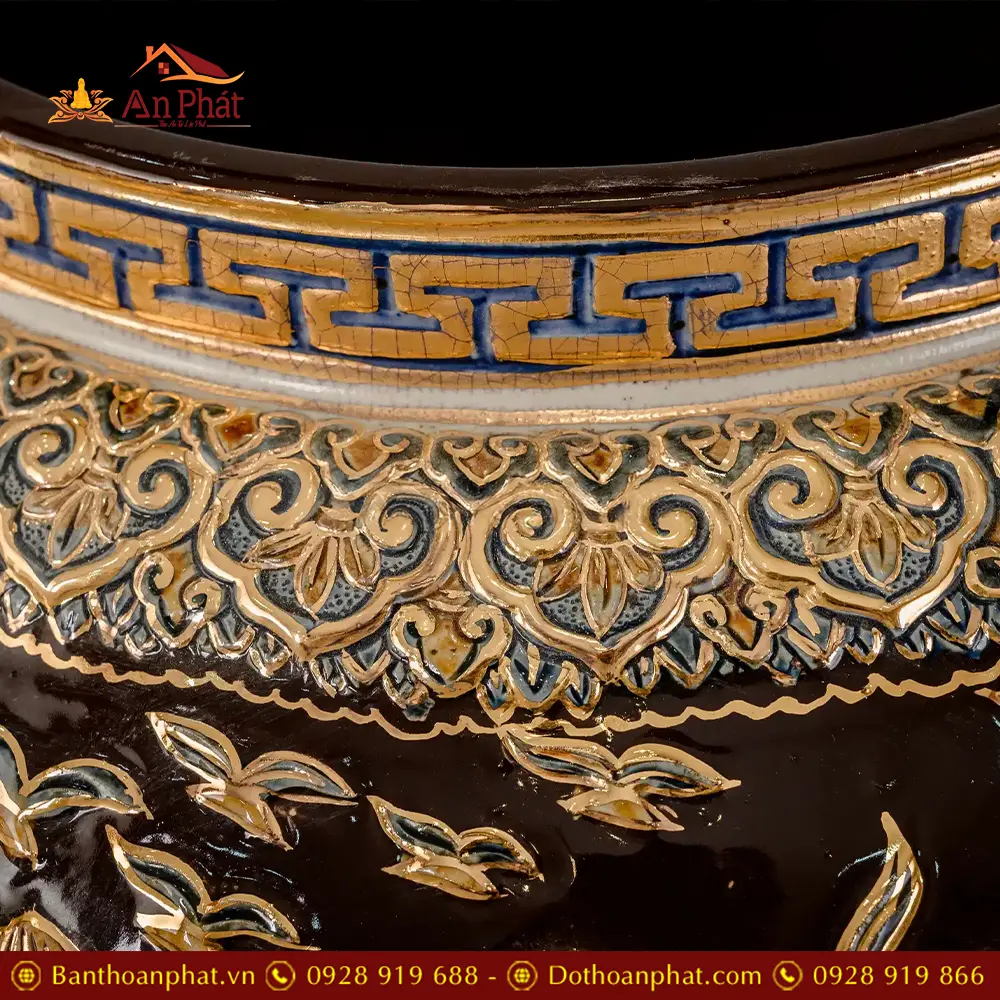 • Chất liệu: Men Màu Nâu Đắp Nổi Vẽ Vàng