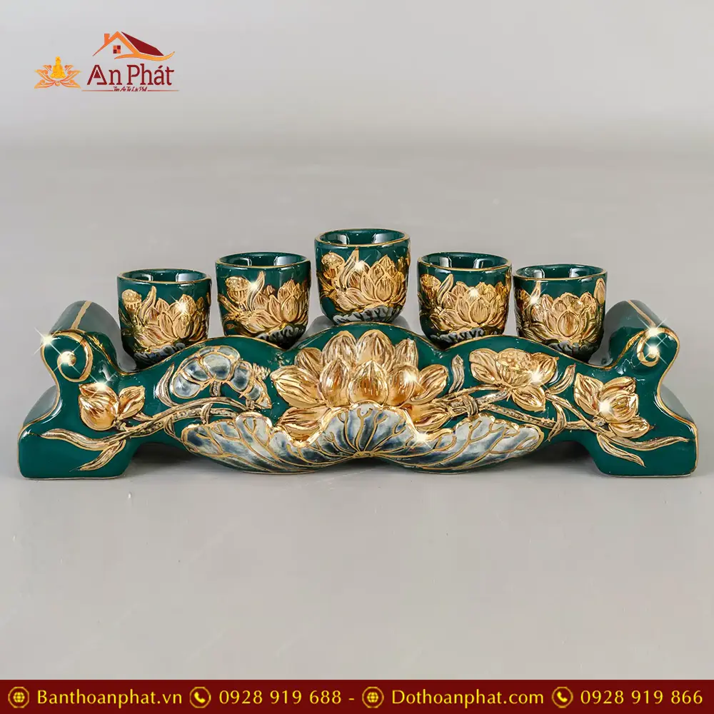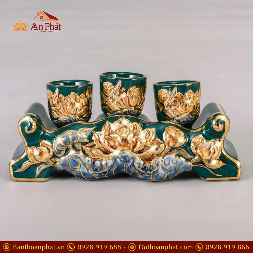 Kỷ Chén Ngai Đắp Nổi Xanh Vẽ Vàng Cao Cấp DT801