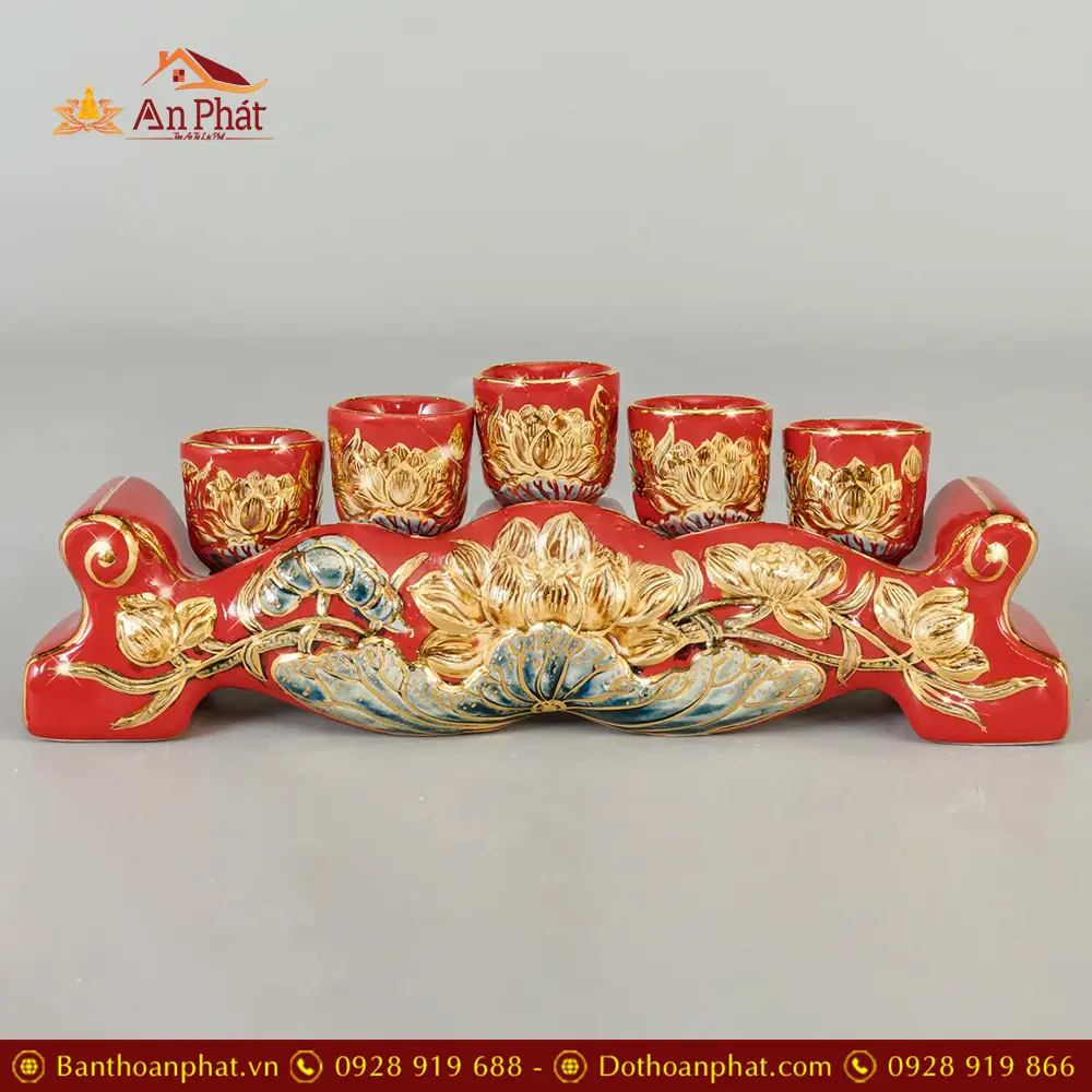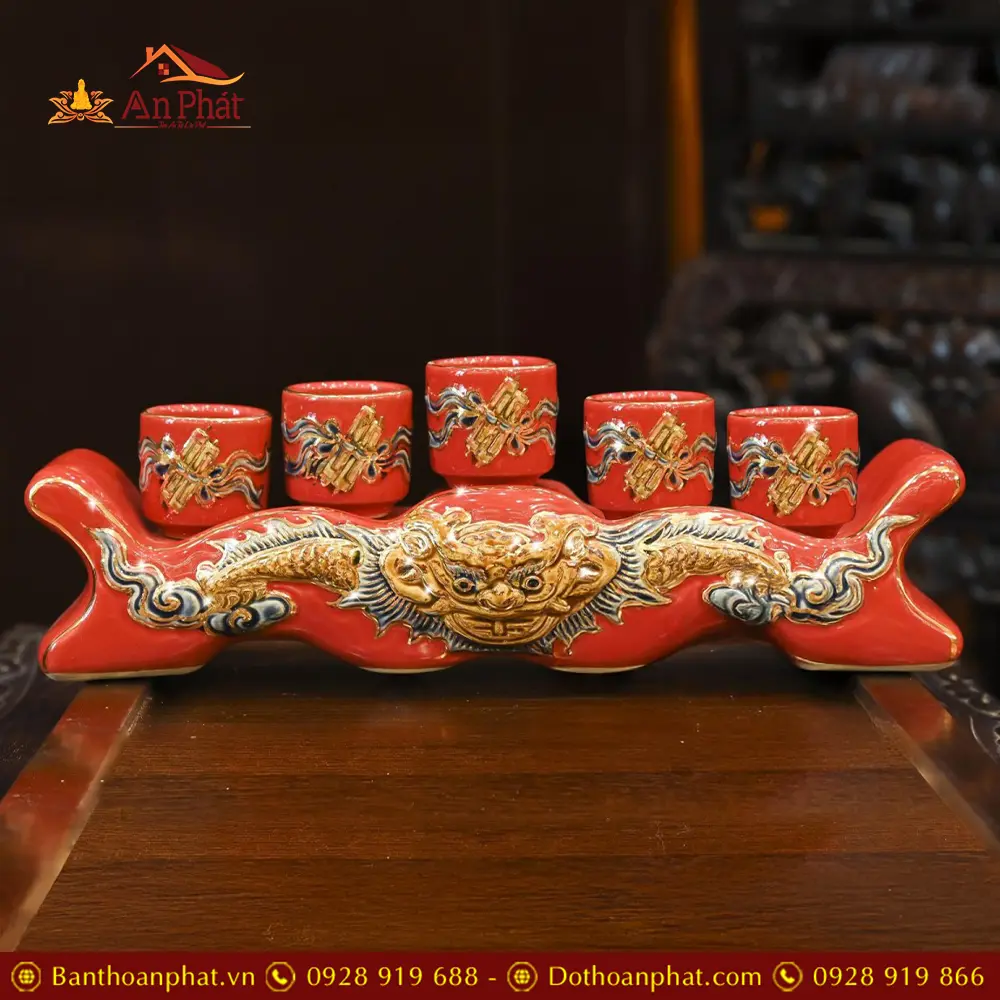 Kỷ Chén Ngai Đỏ Đắp Nổi Vẽ Vàng Cao Cấp DT797