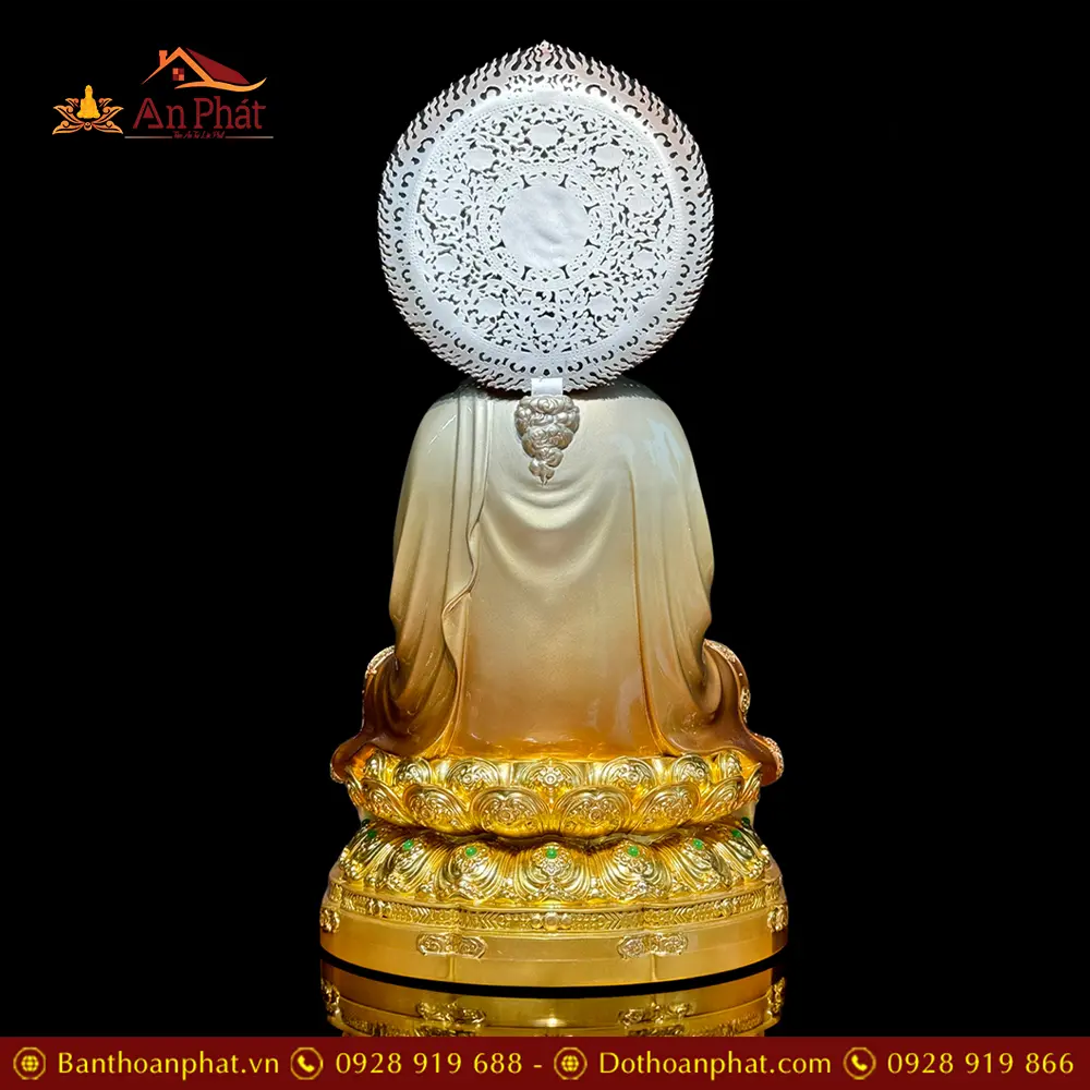 Tượng Phật A Di Đà Đồng Men Cổ Cao Cấp Có Lá Đề T2534