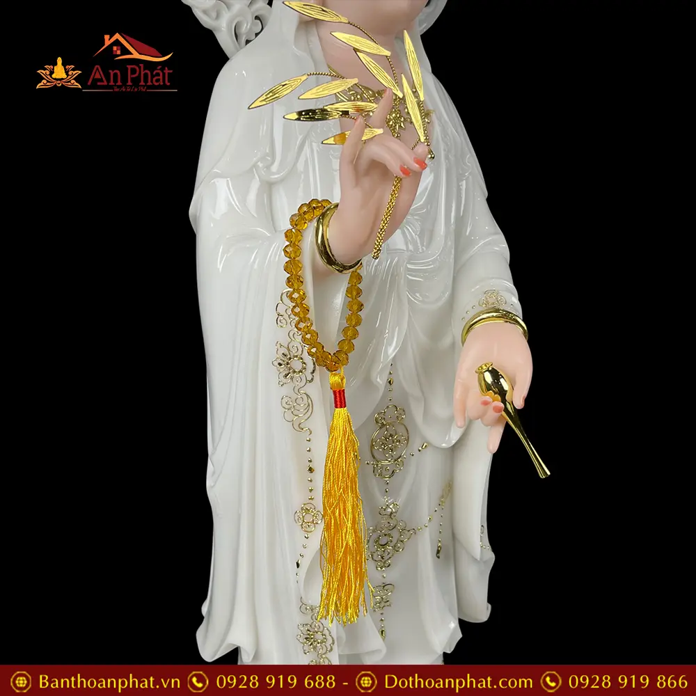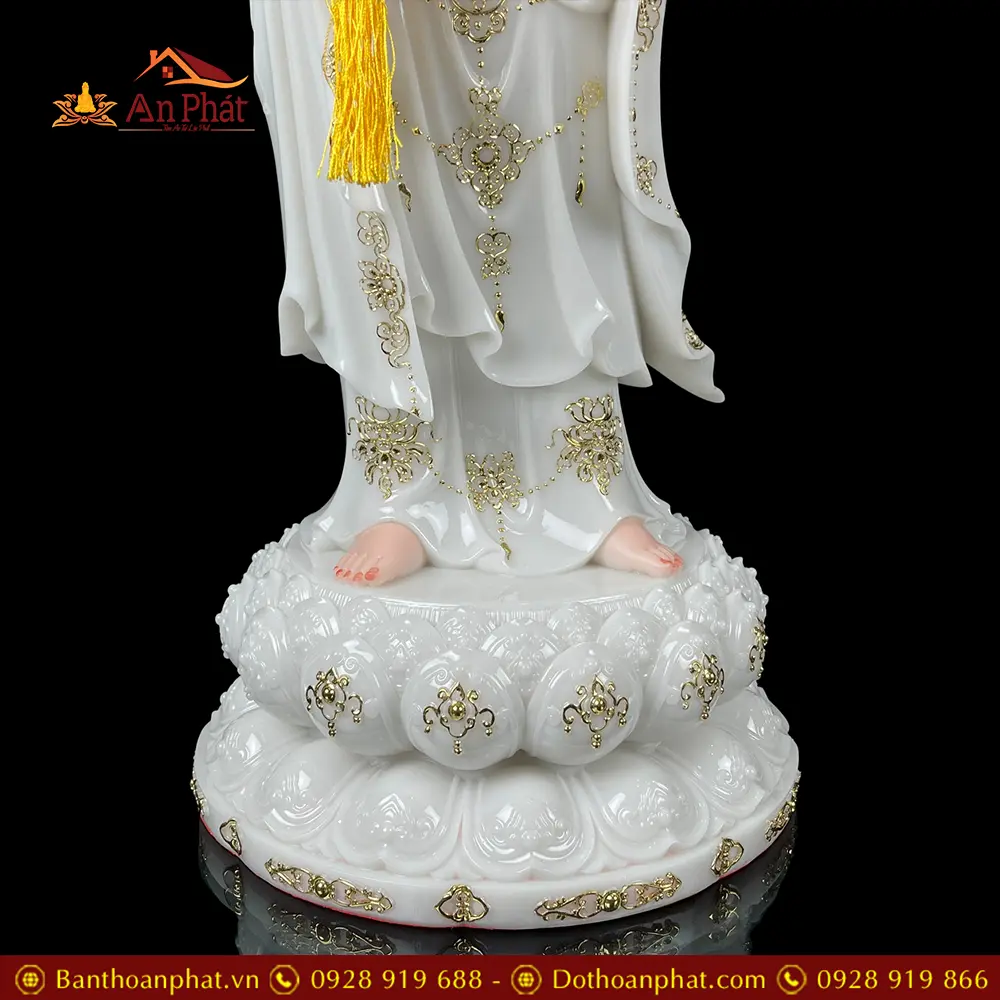 Tượng Phật Bà Quan Thế Âm Bồ Tát Trắng Viền Vàng Đứng Cao Cấp T2590