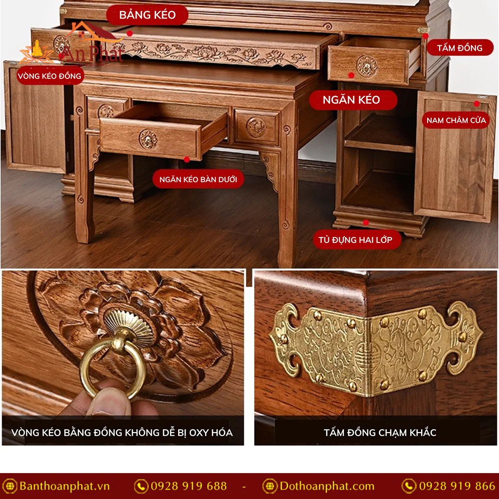 Ban Thờ Gỗ Nhập Khẩu Khắc Kinh Phật BT8701 An Phát