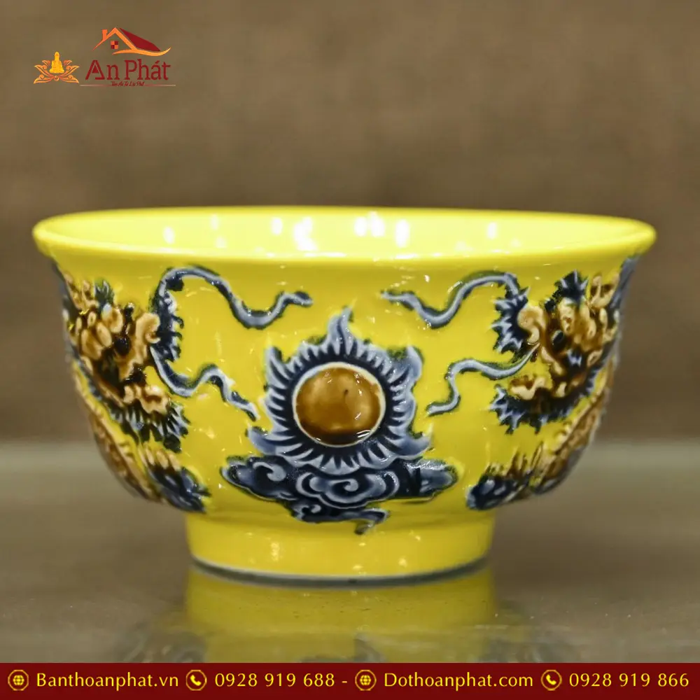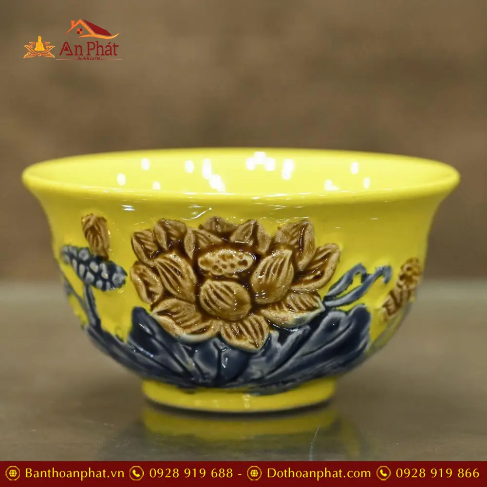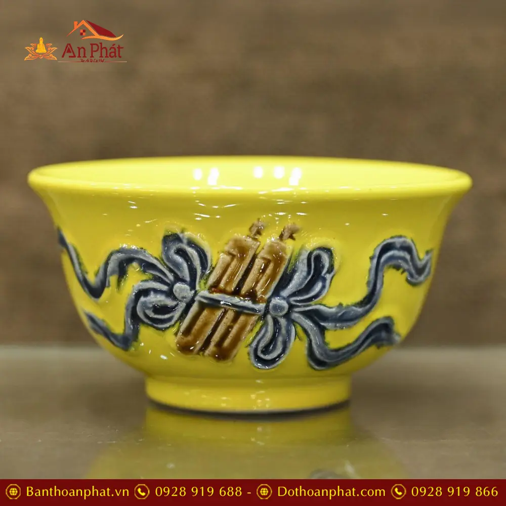 Bát Cơm Thờ Cúng Men Màu Vàng Đắp Nổi Bát Tràng DT842