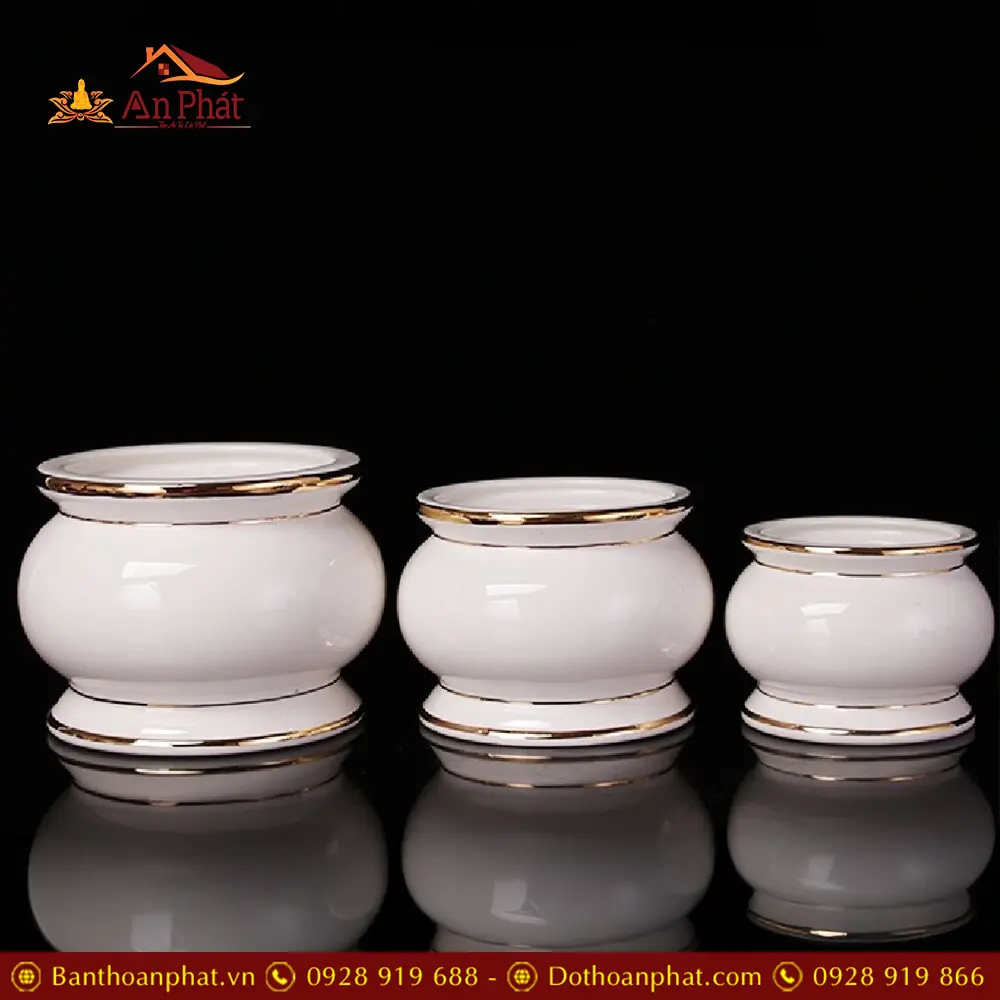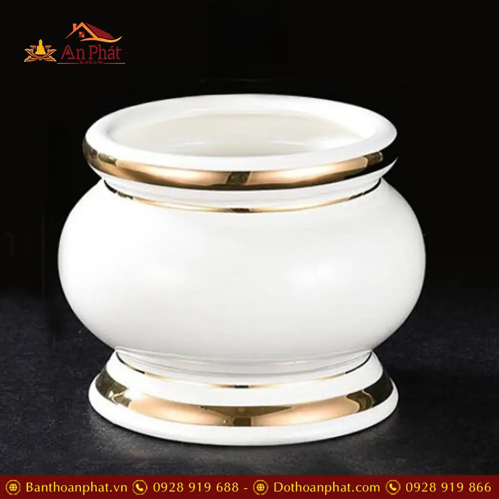 Bát Hương Sứ Trắng Viền Vàng Nhập Khẩu DT553