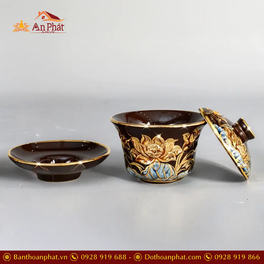 • Chất liệu: Men Nâu Đắp Nổi Vẽ Vàng 24K