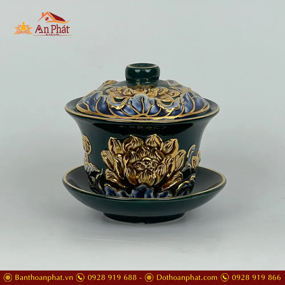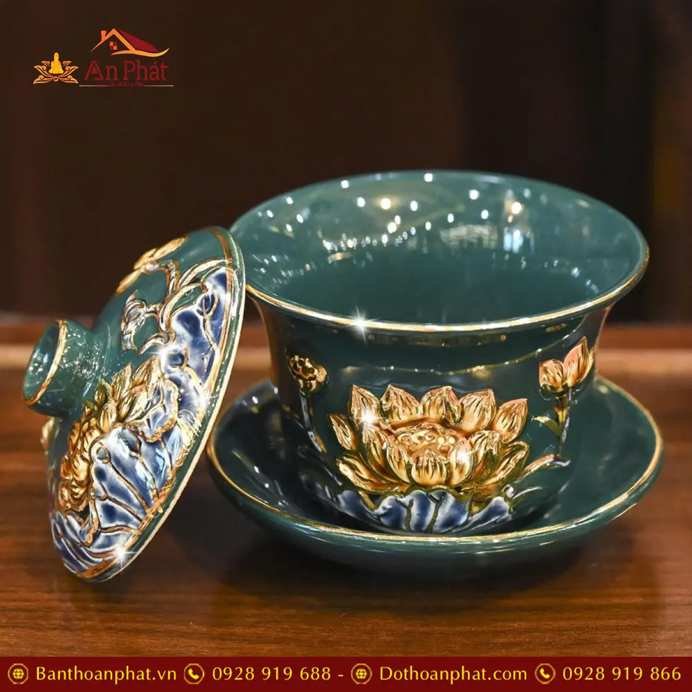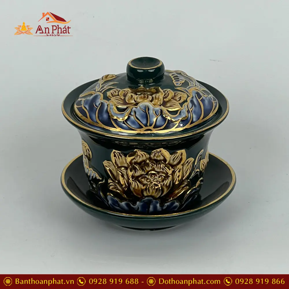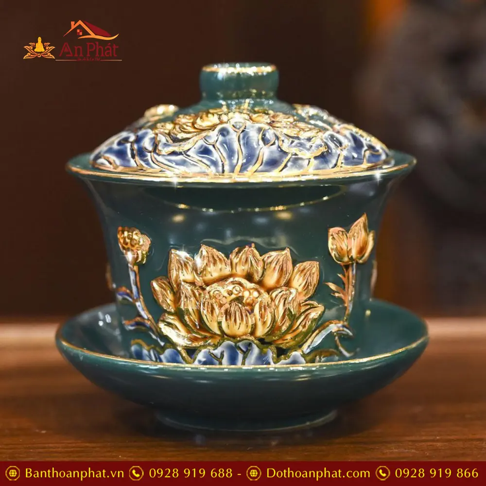 Bát Sâm Đắp Nổi Xanh Vẽ Vàng Bát Tràng DT662