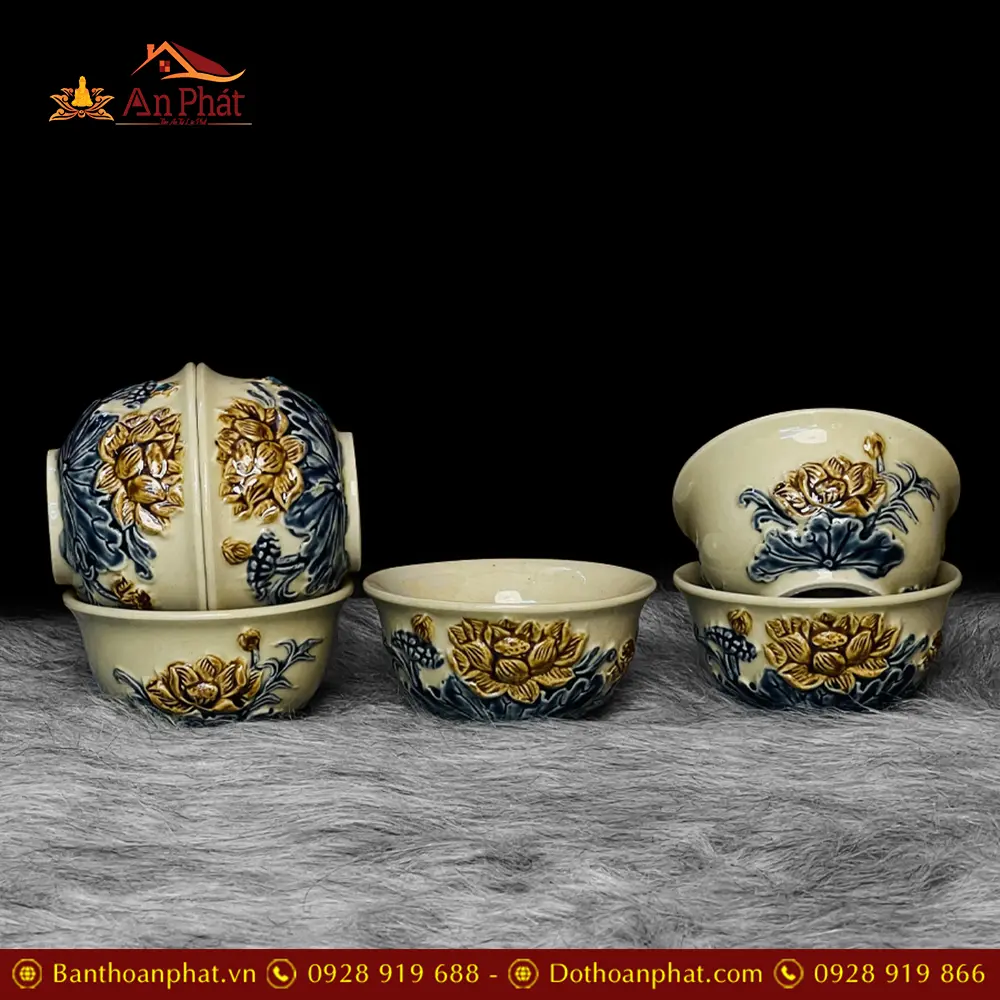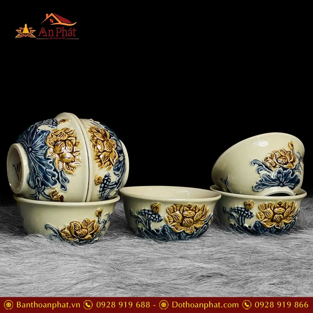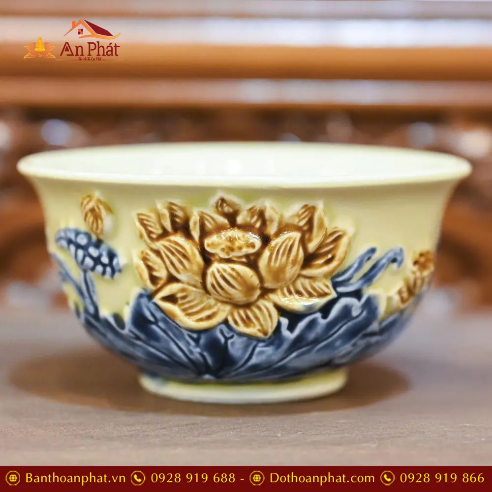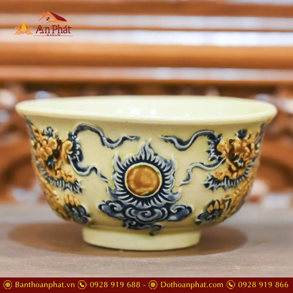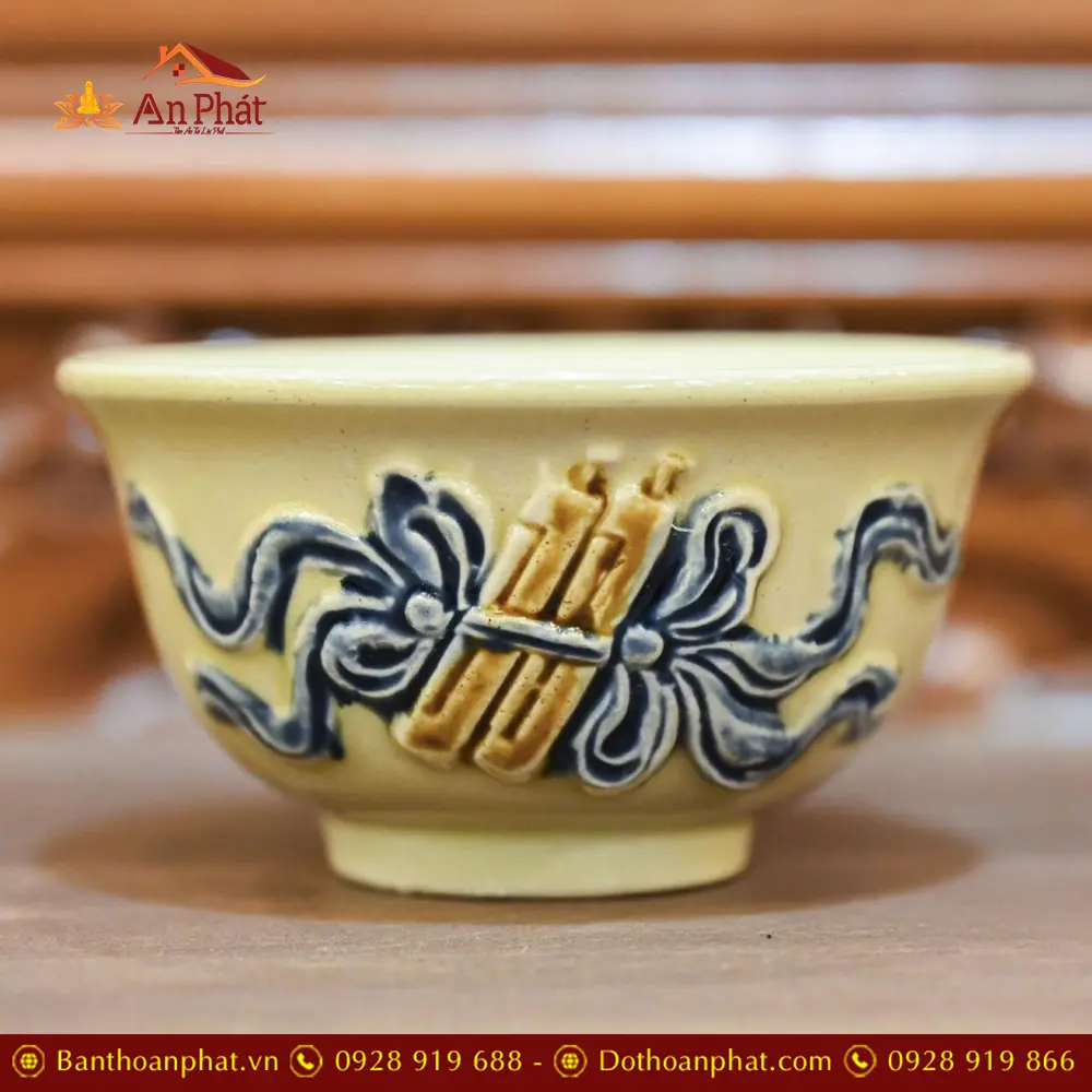 Bát Thờ Cúng Hoàng Thổ Đắp Nổi Bát Tràng DT840