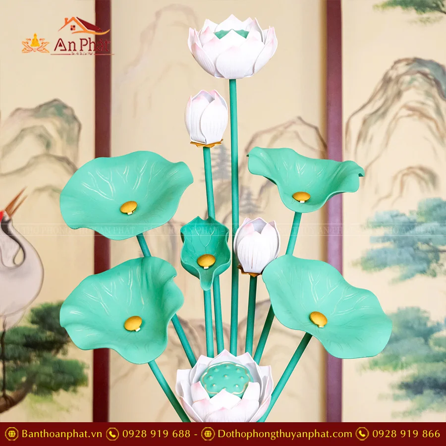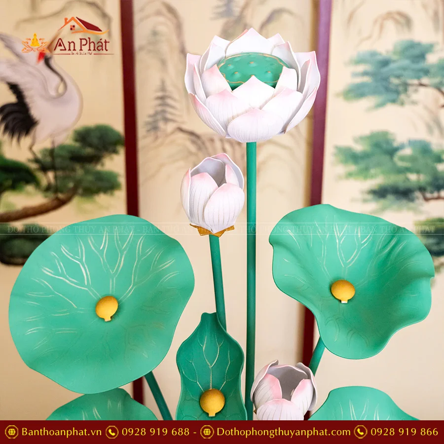 Bình Hoa Sen Đồng Bình Vàng Cành Xanh DTD1442 An Phát