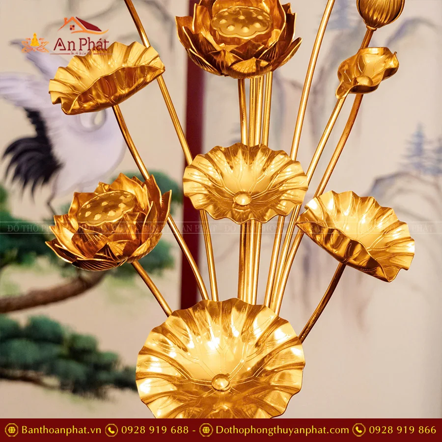 Bình Hoa Sen Đồng Đài Loan Cành Vàng DTD1445 An Phát