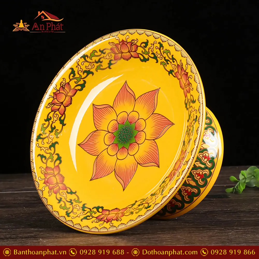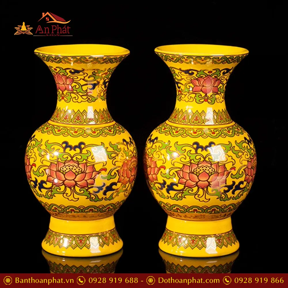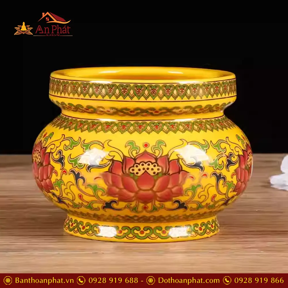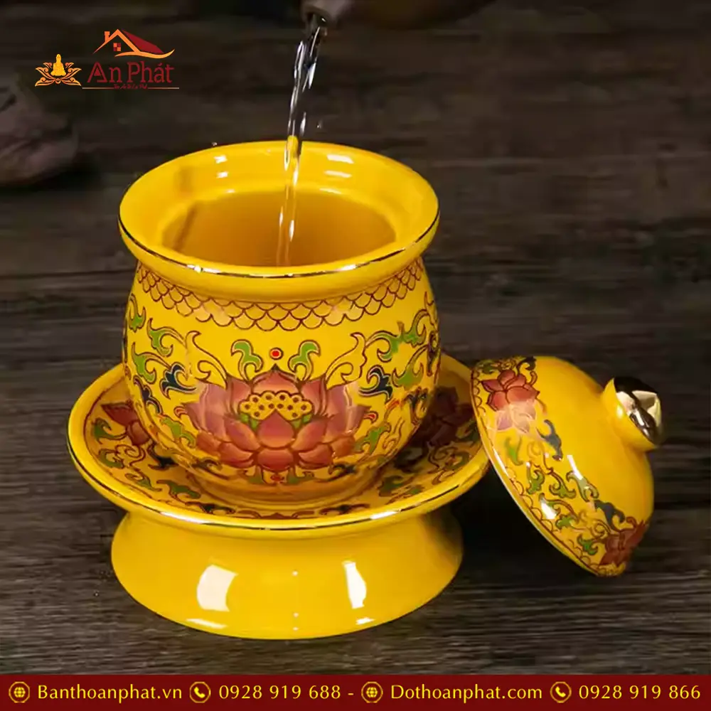 Bộ Đồ Thờ Sứ Gấm Vàng Hoa Sen Nhập Khẩu BDT099