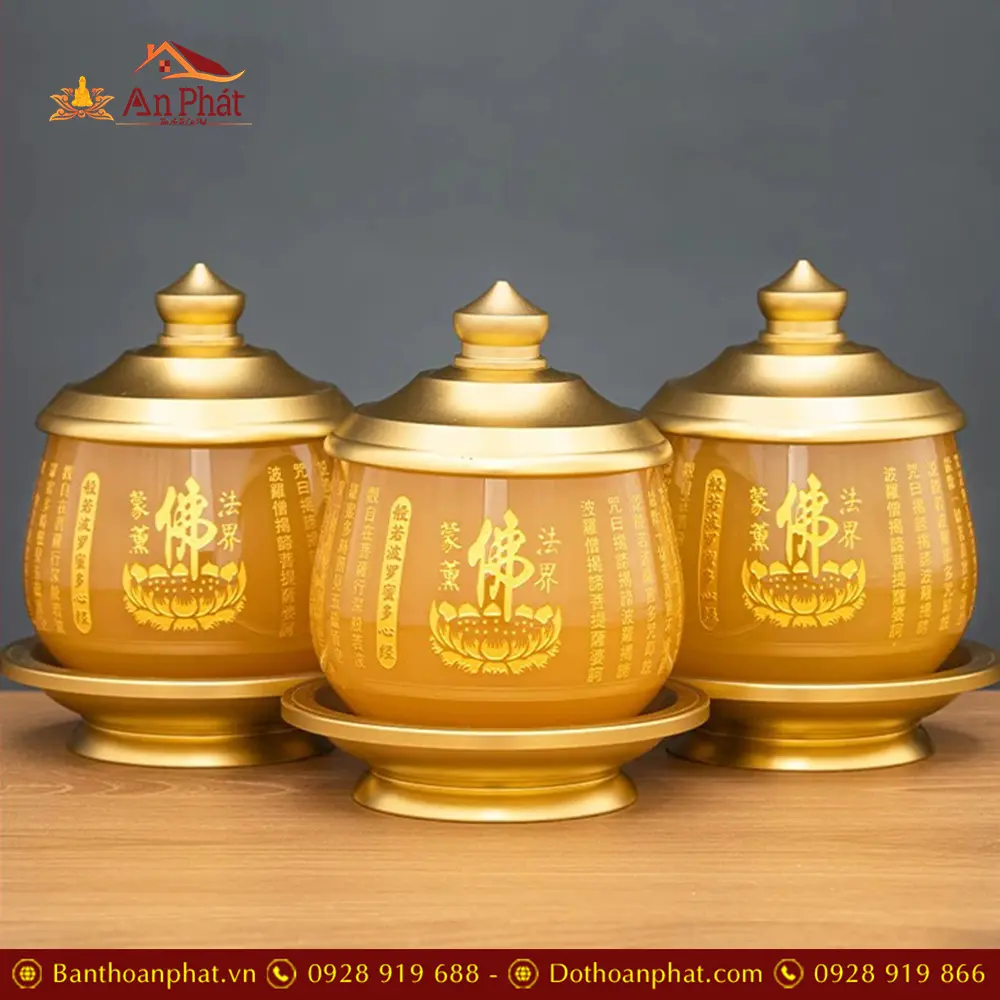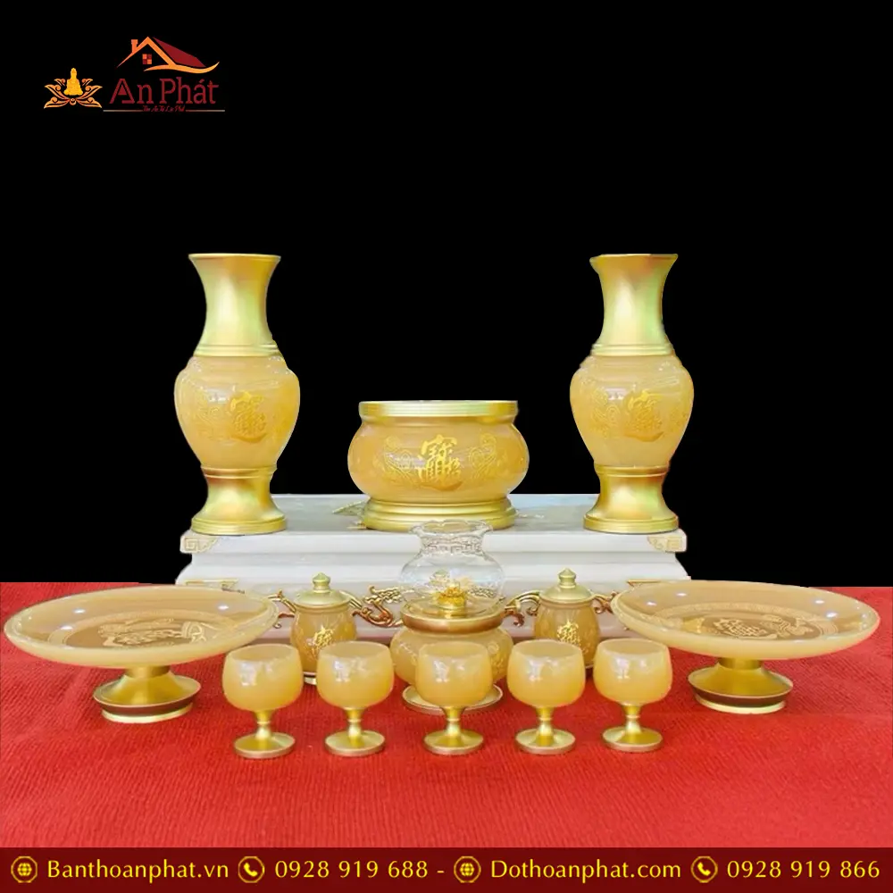 Bộ Đồ Thờ Tâm Kinh Vàng Ngọc Bọc Đồng Cao Cấp BDT096