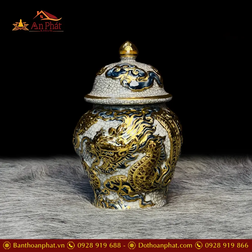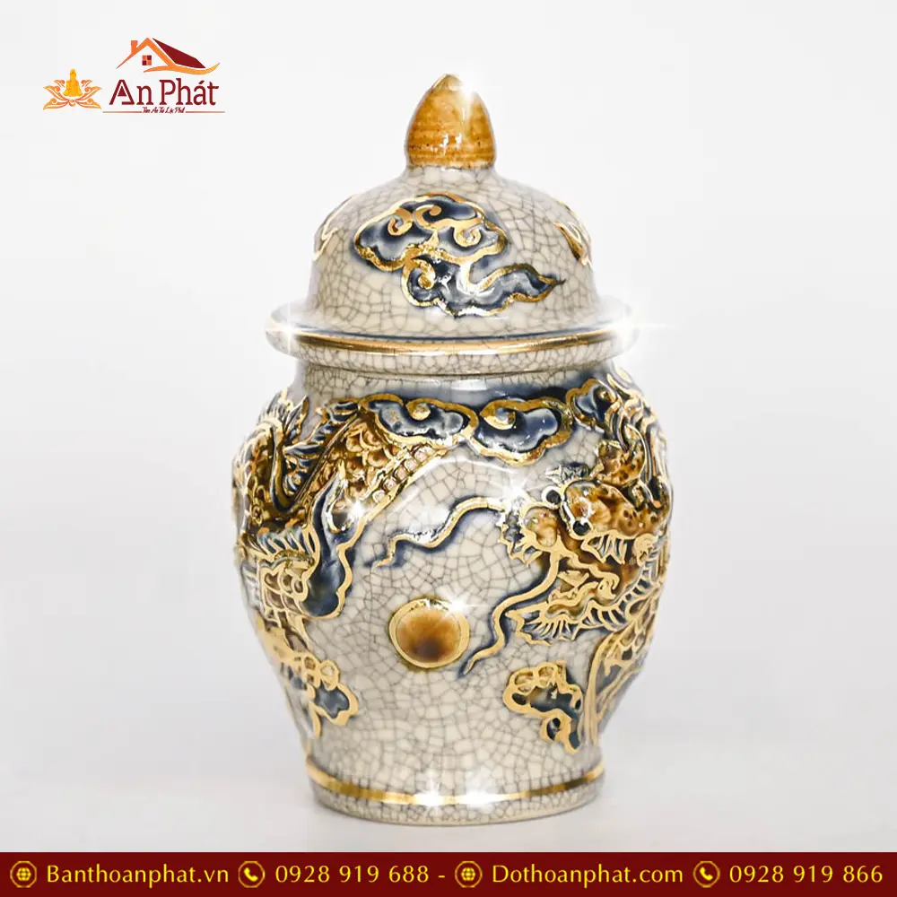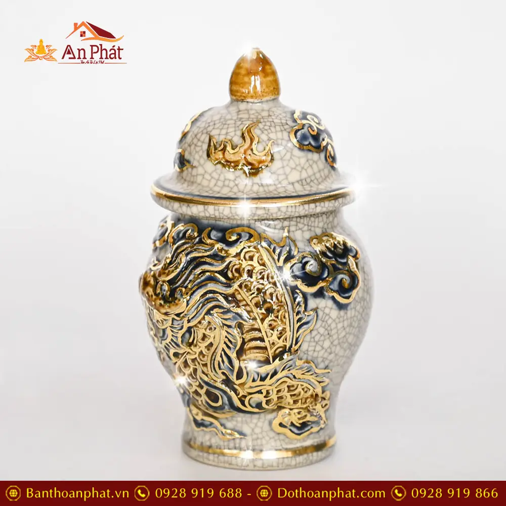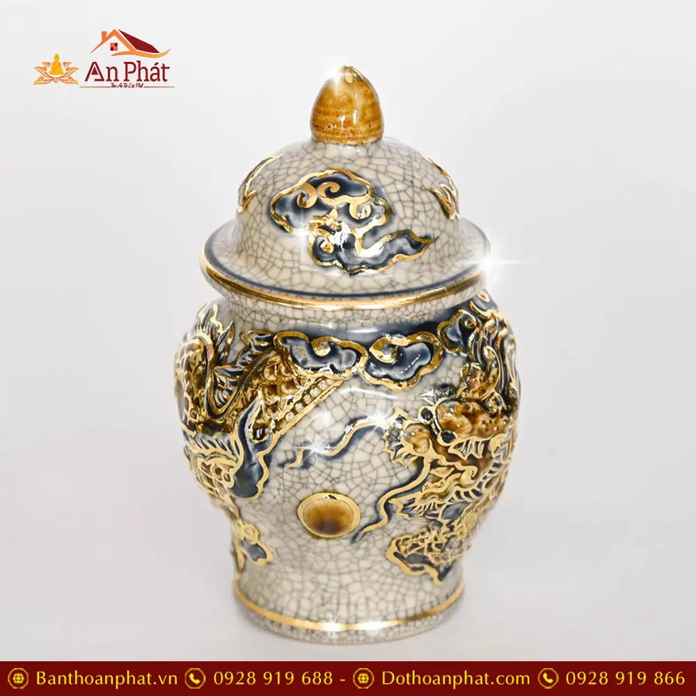 Choé Thờ Bát Tràng Men Rạn Vẽ Vàng 24K DT634
