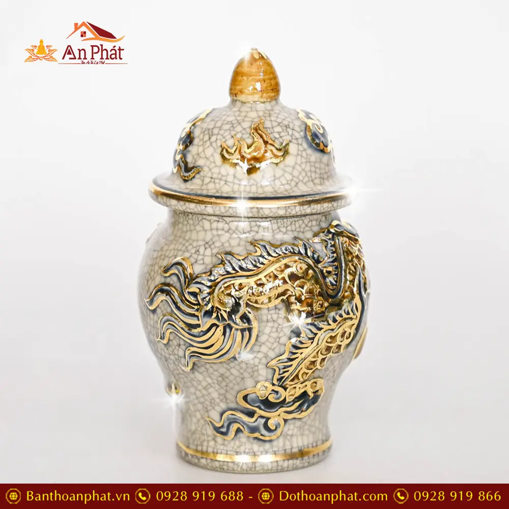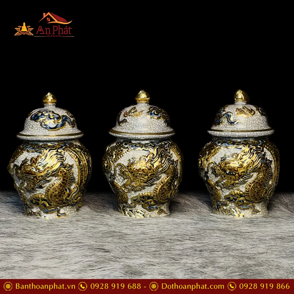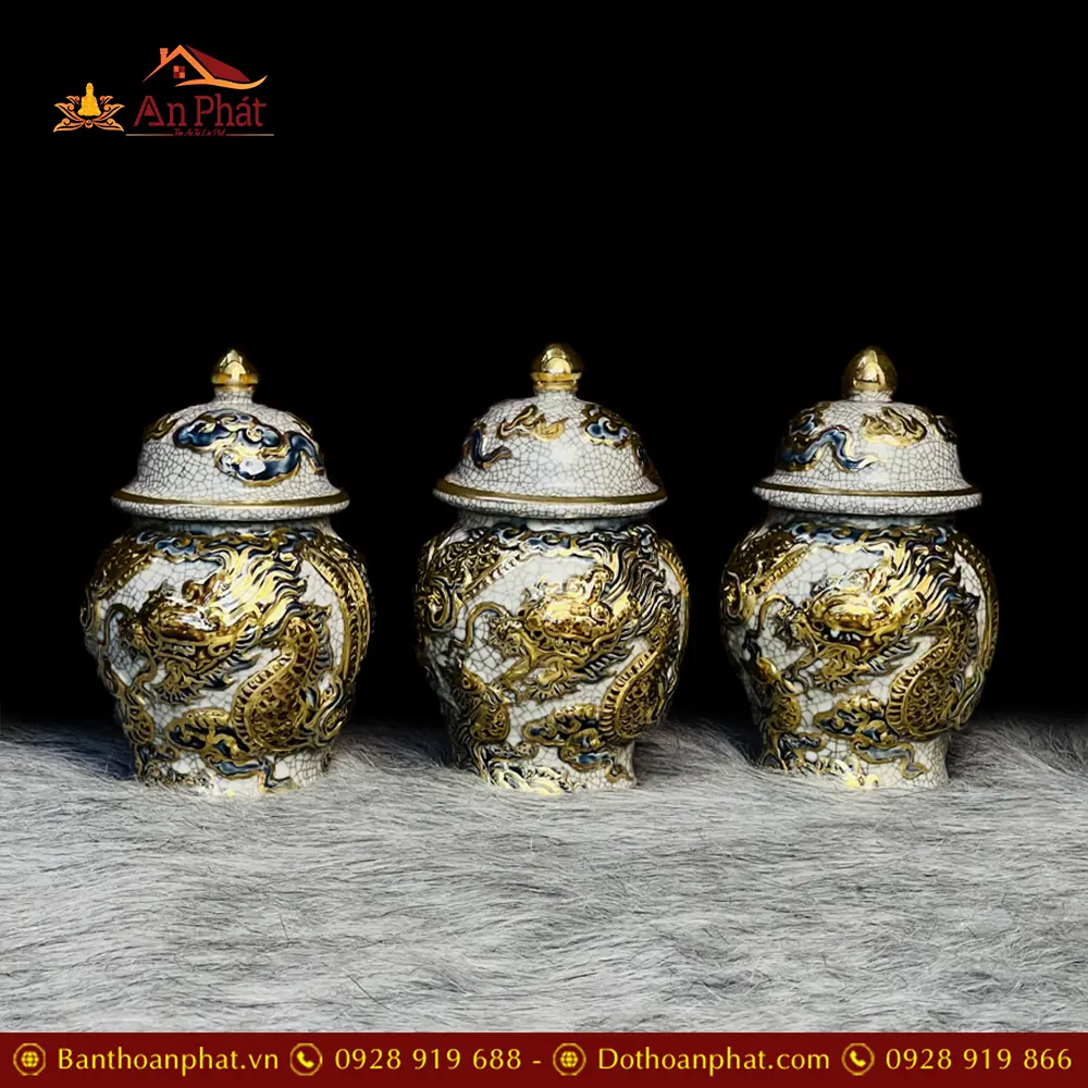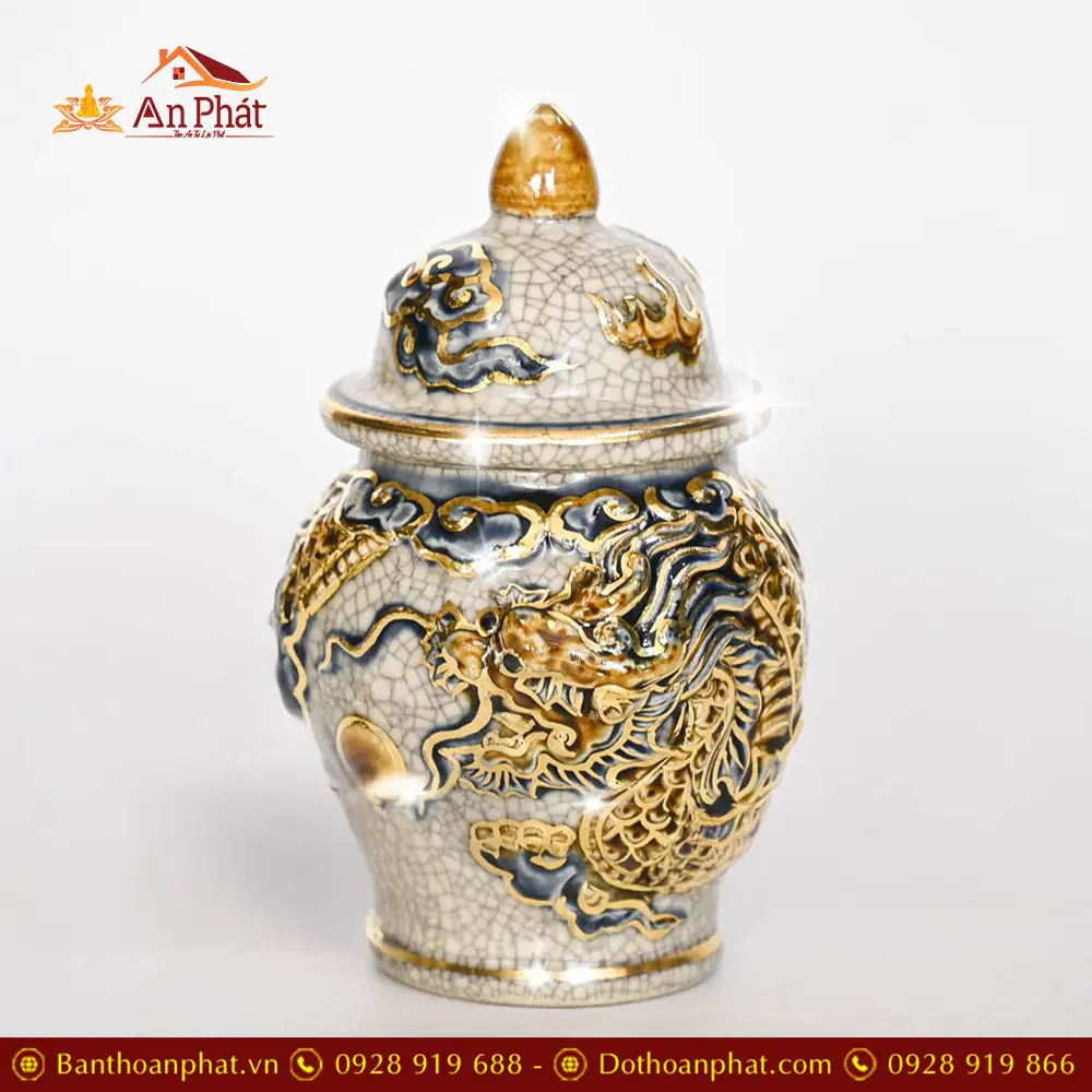 Choé Thờ Bát Tràng Men Rạn Vẽ Vàng 24K DT634