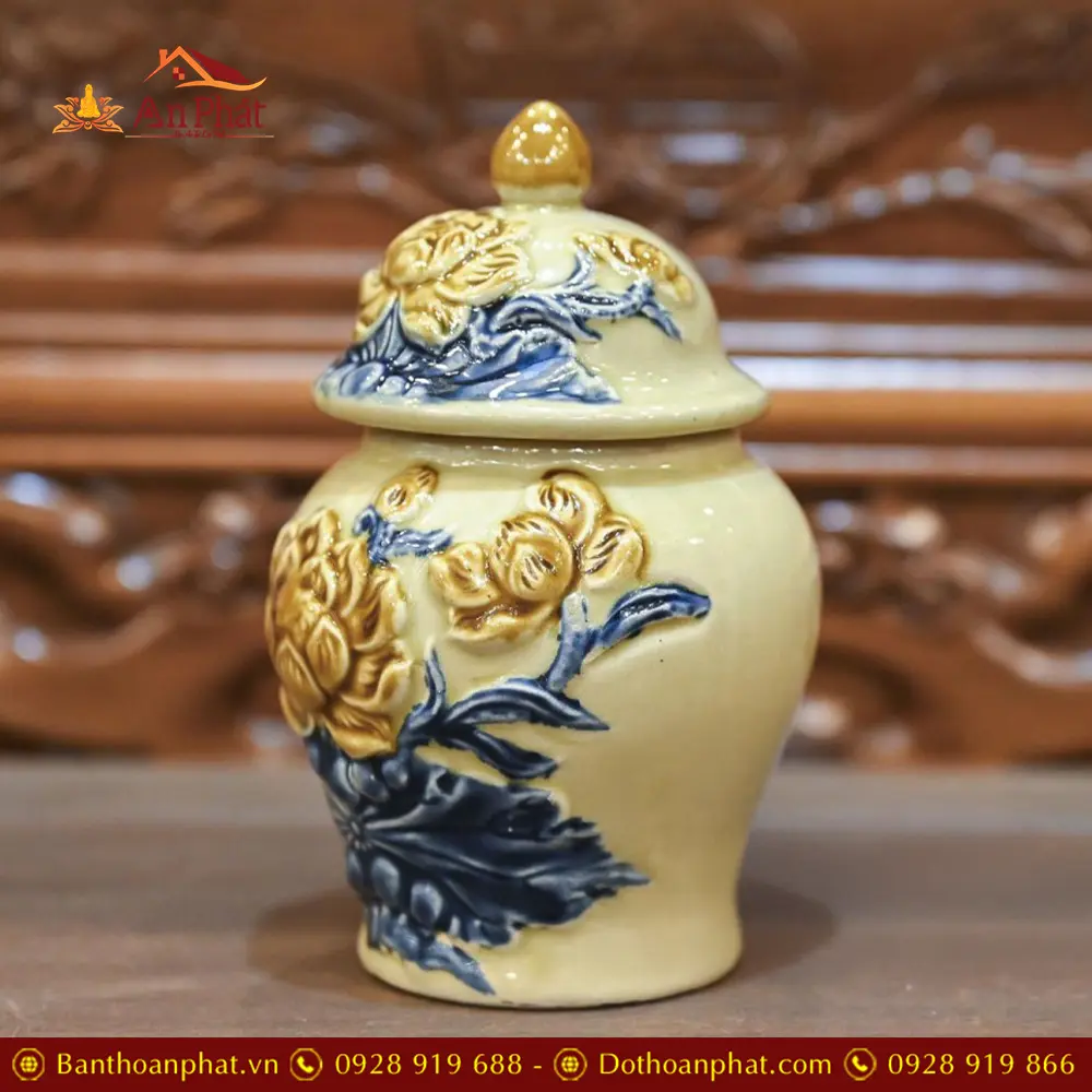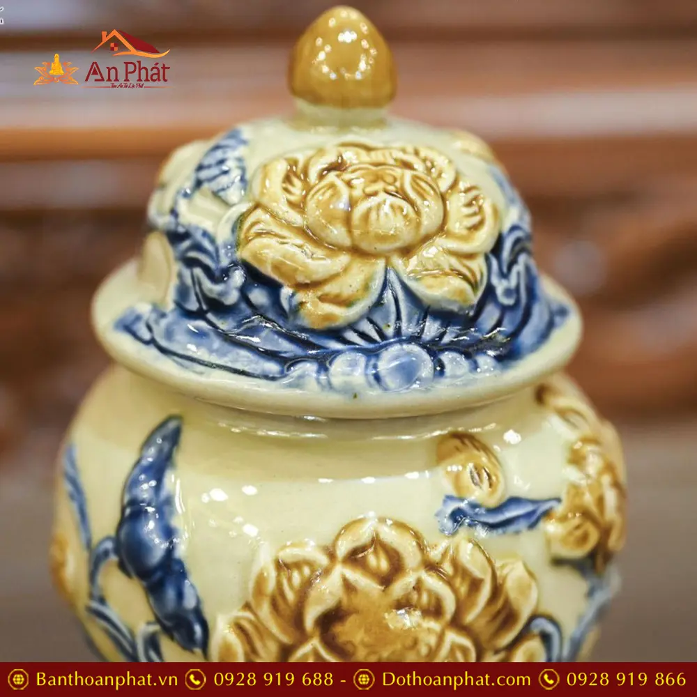 Choé Thờ Hoàng Tộc Đắp Nổi Hoa Sen Bát Tràng DT758
