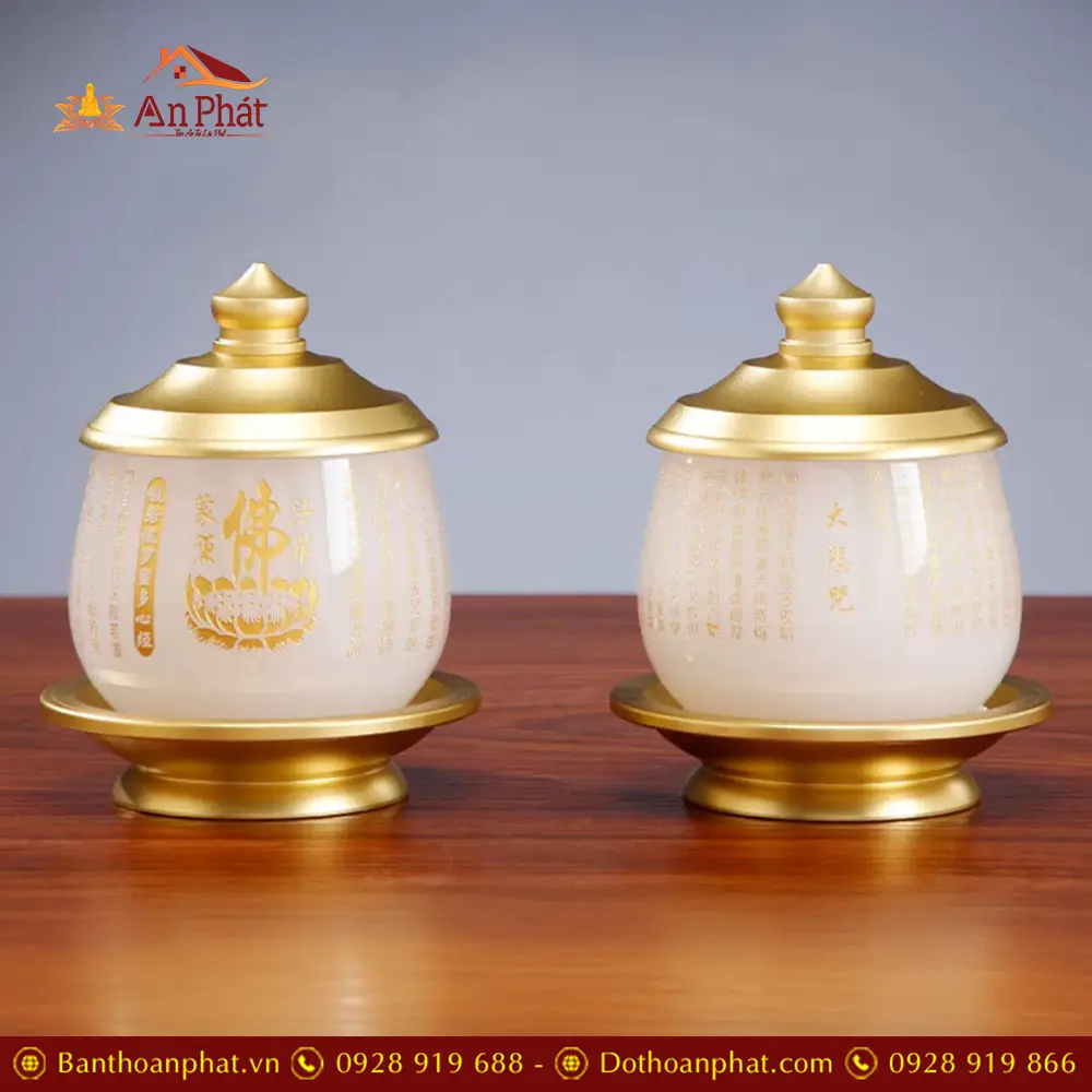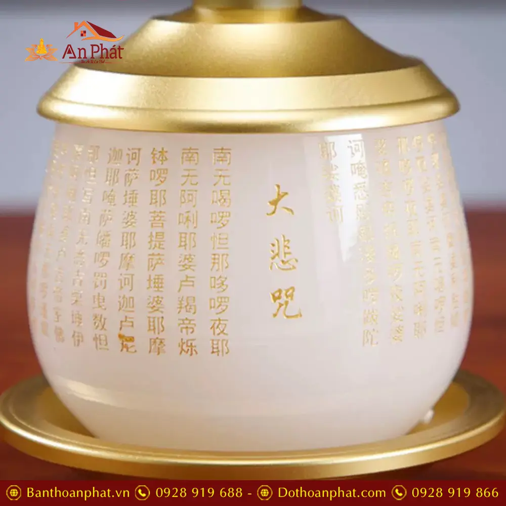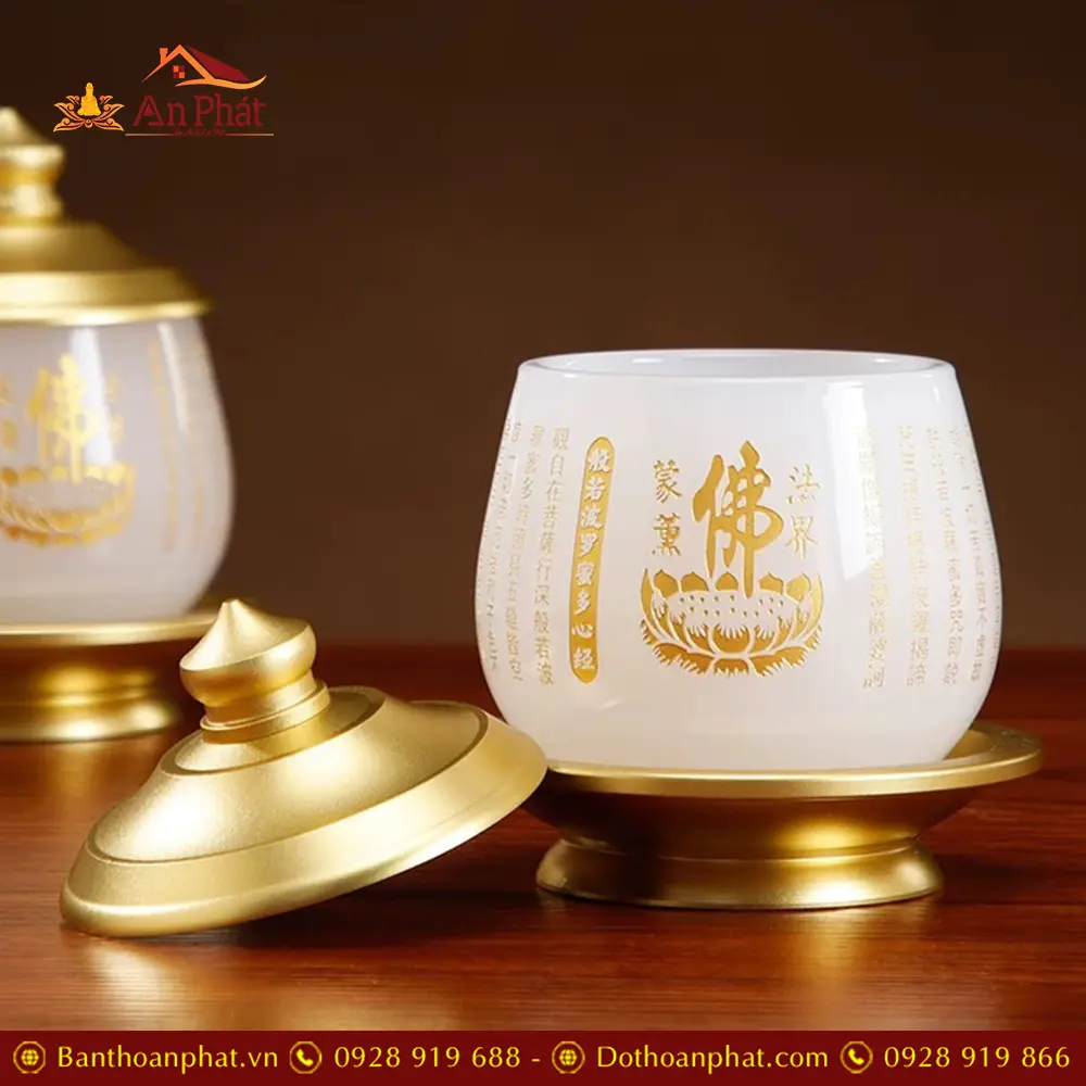 Choé Thờ Ngọc Trắng Tâm Kinh Bọc Đồng Cao Cấp DT579