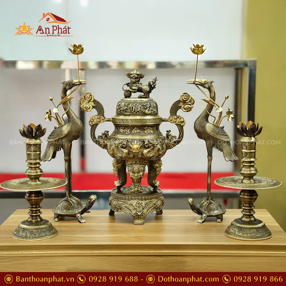 Combo Đỉnh Hạc Đồng Cao Cấp Mẫu Phụng Gia Tiên DT1092