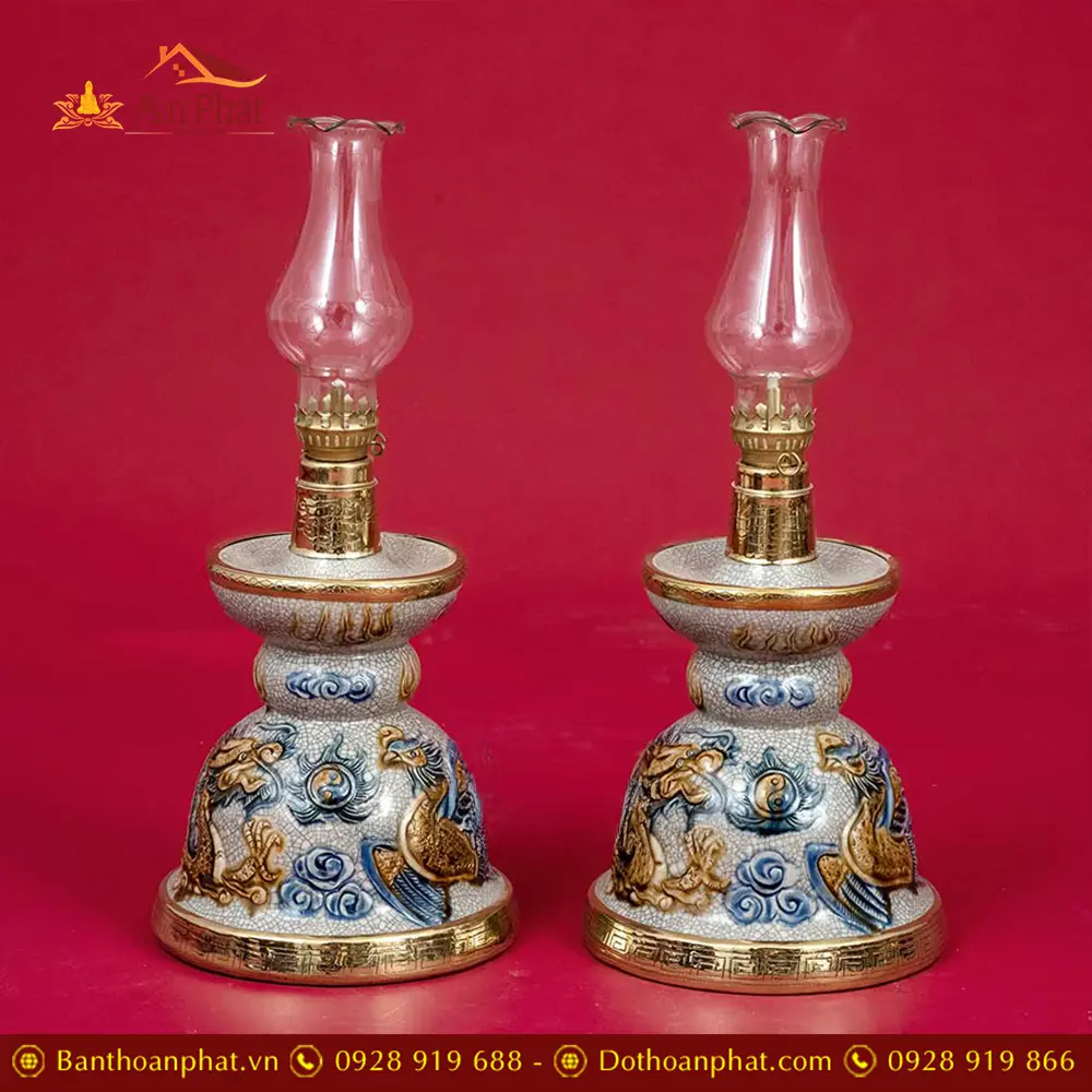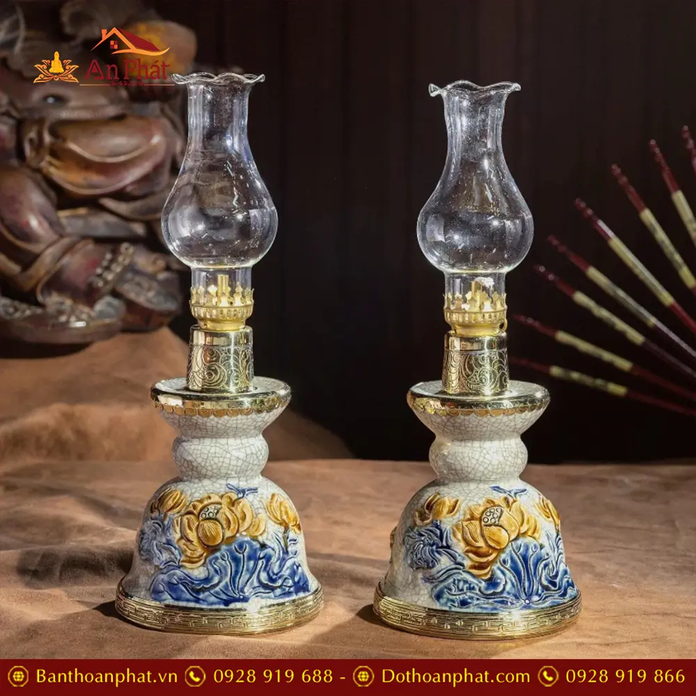 Đèn Dầu Thờ Bát Men Rạn Đắp Nổi Bọc Đồng Cao Cấp DT985