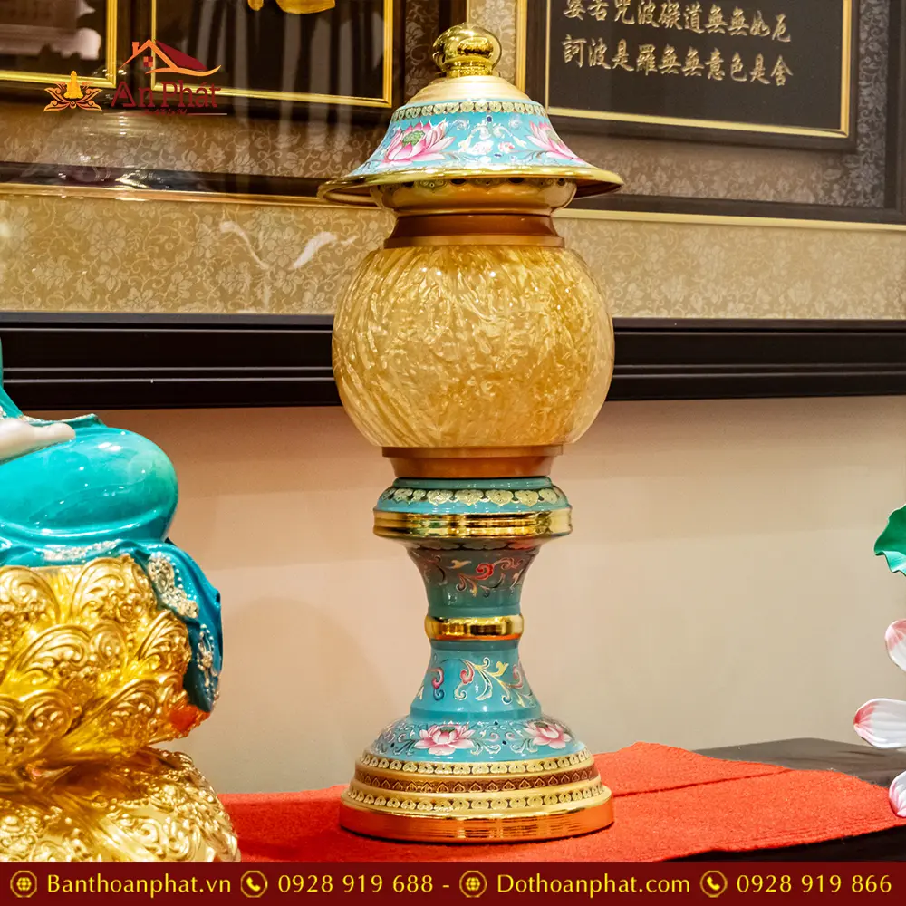 Đèn Thờ Cao Cấp Hợp Kim Gấm Xanh Dương DTD1387
