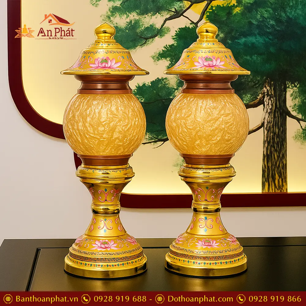 Đèn Thờ Hợp Kim Gấm Hoa Sen Vàng Cao Cấp DTD1388