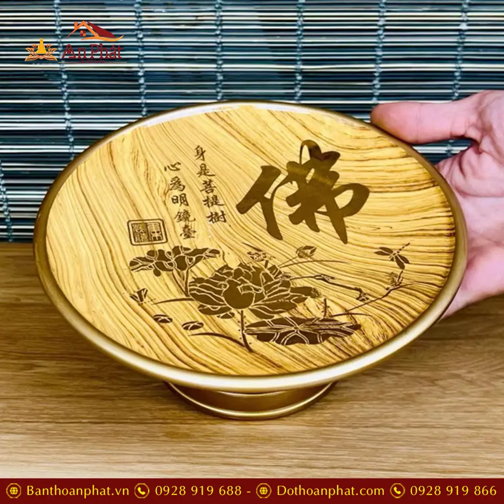 Đĩa Bồng Thờ Sứ Bát Nhã Tâm Kinh Vàng Chữ Phật DT631