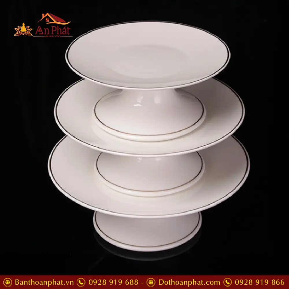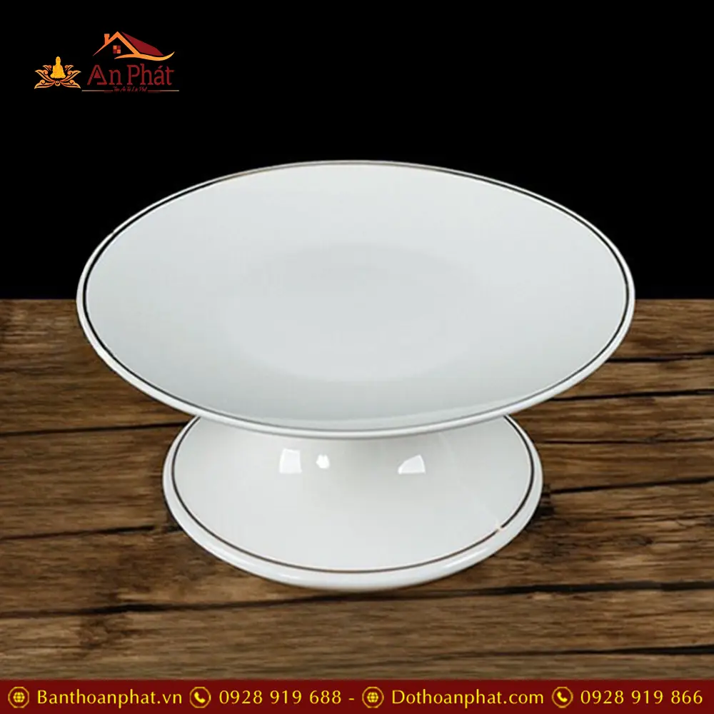 Đĩa Thờ Sứ Trắng Viền Vàng Nhập Khẩu DT555