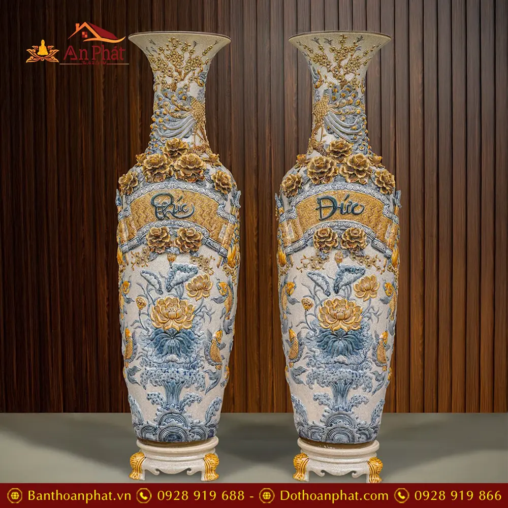 Lọ Lộc Bình Phúc Đức Men Rạn Đắp Nổi Bát Tràng DT917