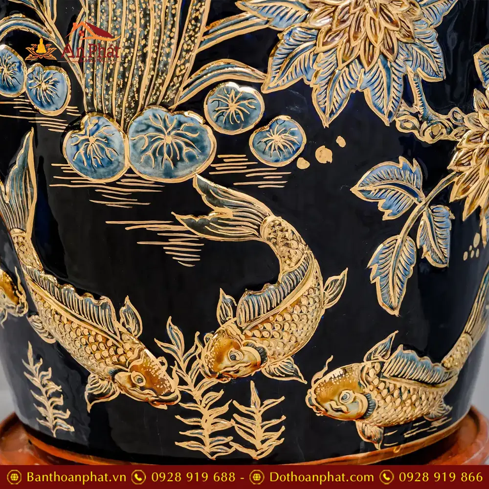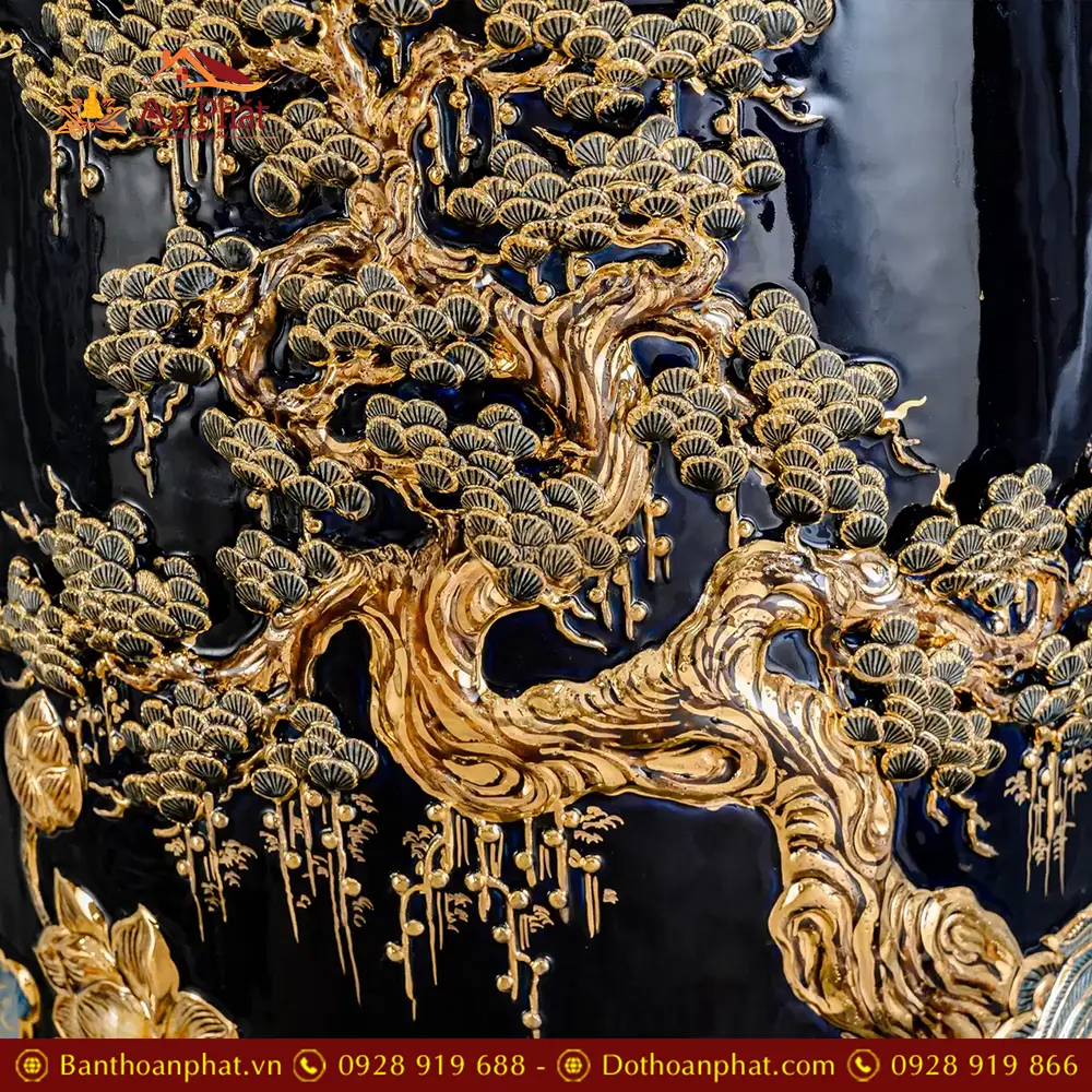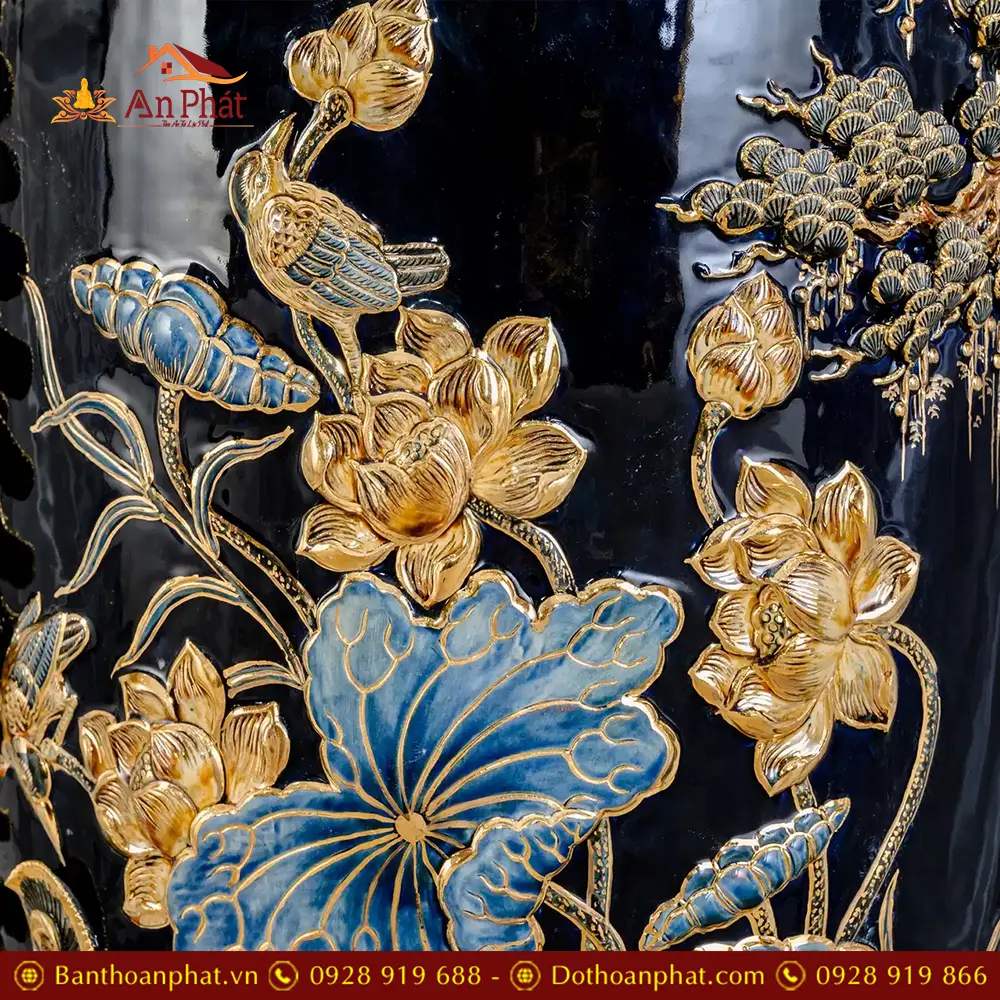 • Chất liệu: Men Xanh Coban Đắp Nổi Vẽ Vàng 24K