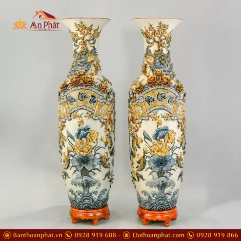 • Chất liệu: Men Xanh Lục Bảo Đắp Nổi Vẽ Vàng