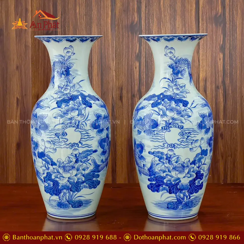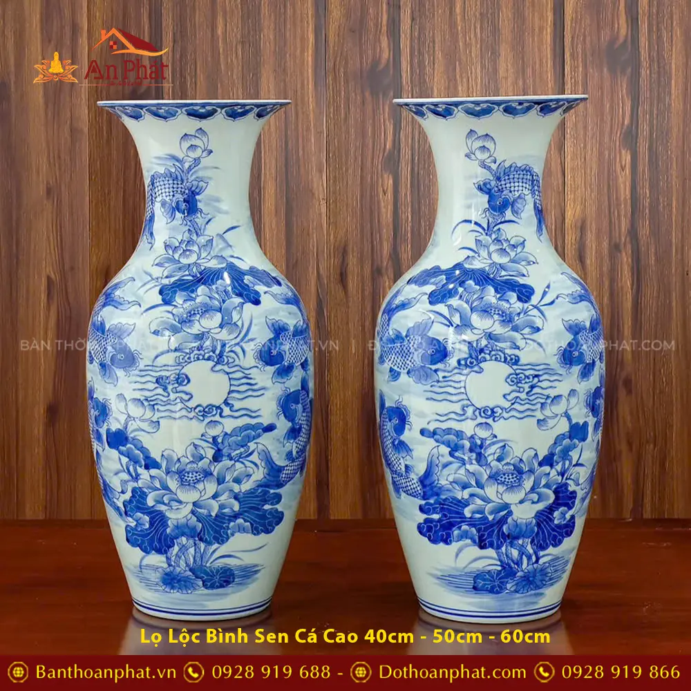 Lộc Bình Hoa Sen Cá Men Lam Gốm Bát Tràng Cao Cấp DT1039