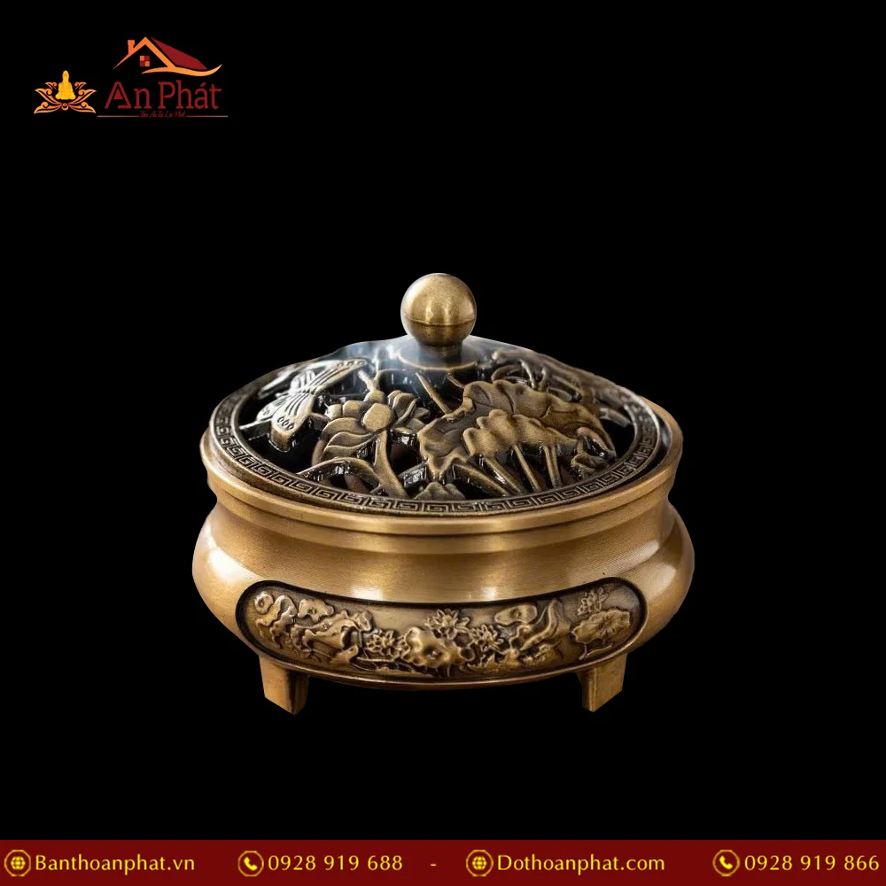 Lư Xông Trầm Bằng Đồng 3 Chân Hoa Sen PK9529 An Phát