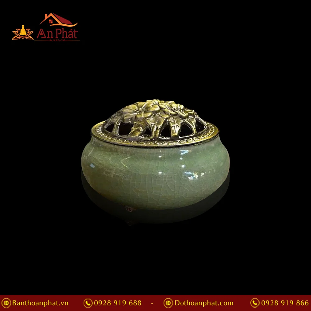 Lư Xông Trầm Gốm Vân Rạn màu Xanh Lục PK9511 An Phát
