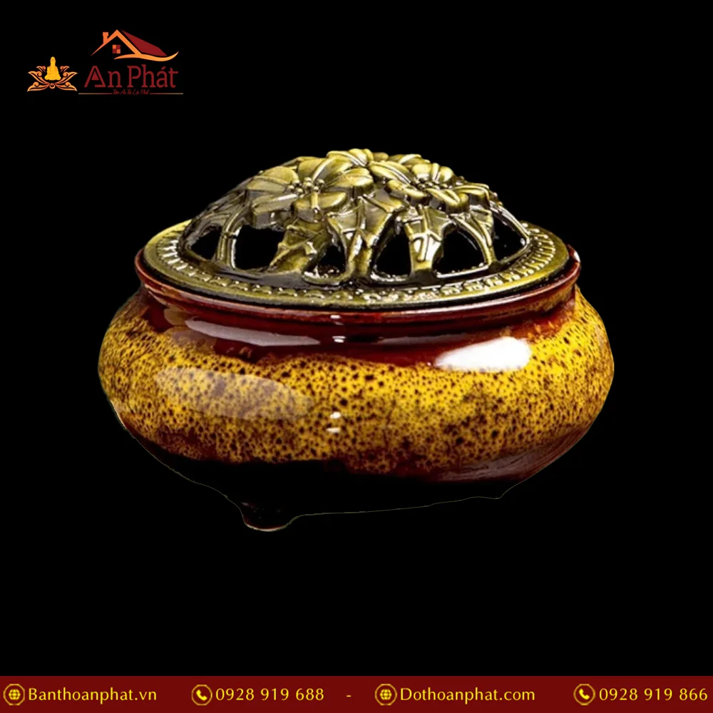 Lư Xông Trầm Hương Gốm Vân Rạn Nâu Vàng PK9514