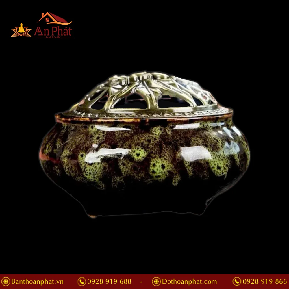 Lư Xông Trầm Hương Gốm Vân Rạn Nâu Xanh Lục PK9515 An Phát