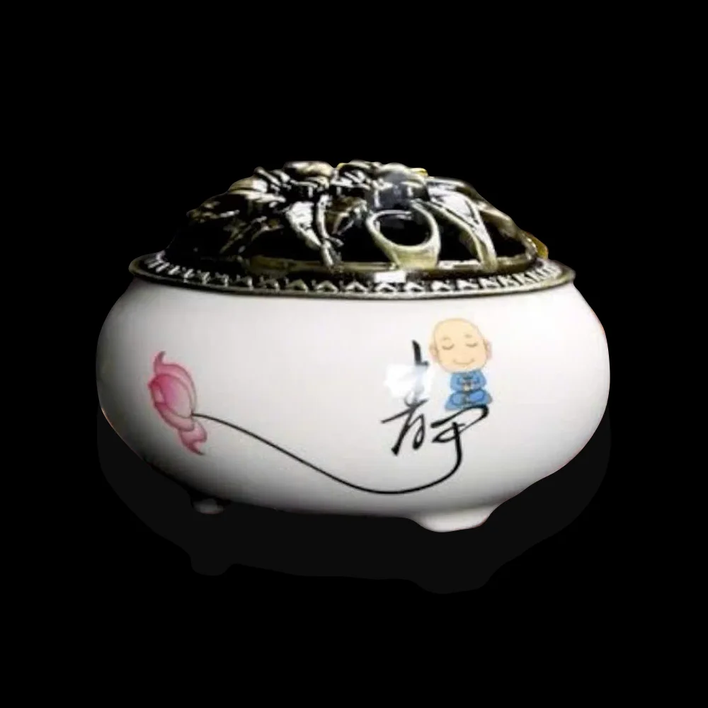 Lư Xông Trầm Hương Gốm Vân Rạn Trắng Chú Tiểu PK9519