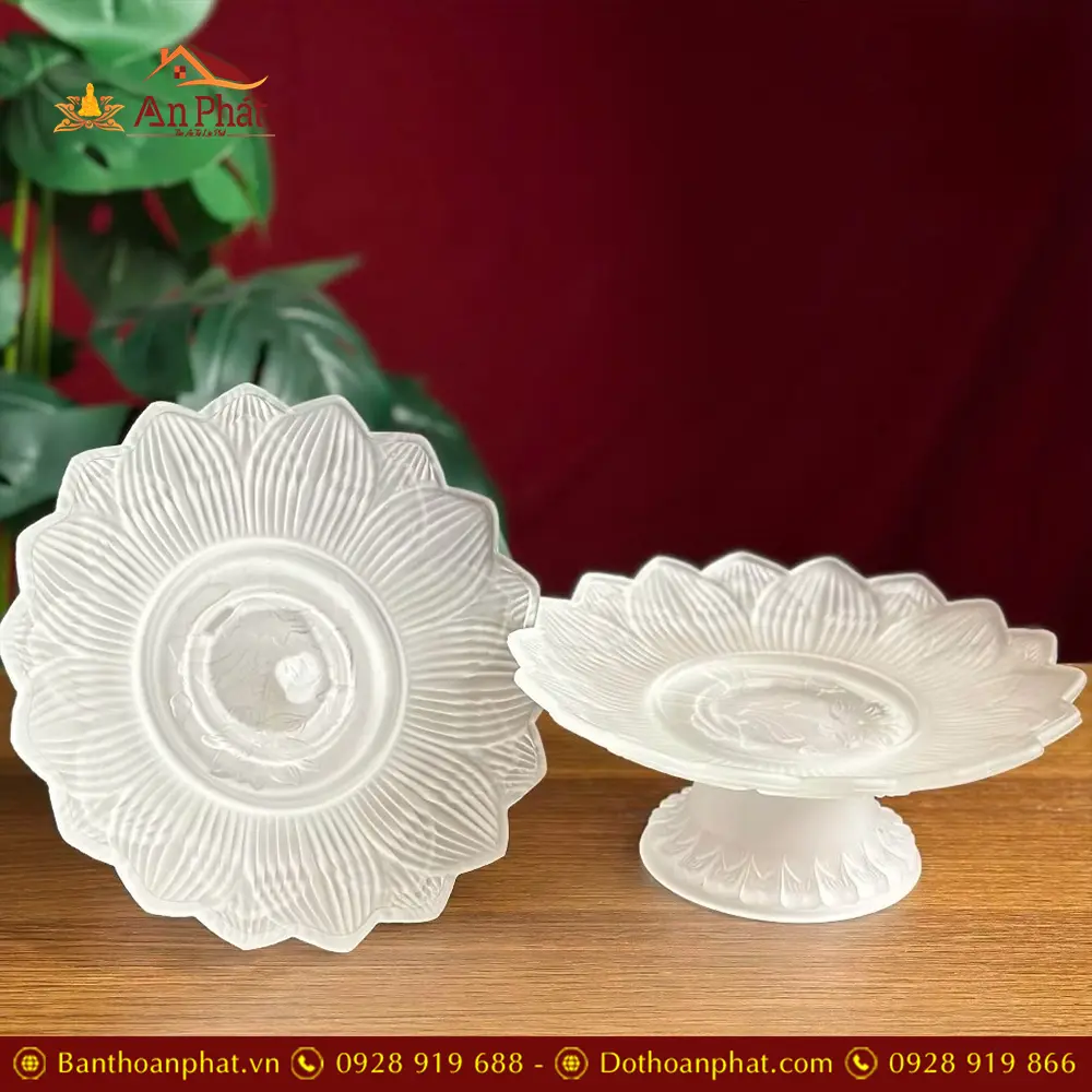 Mâm Bồng Thờ Lưu Ly Hoa Sen Trắng Nhập Khẩu DT576