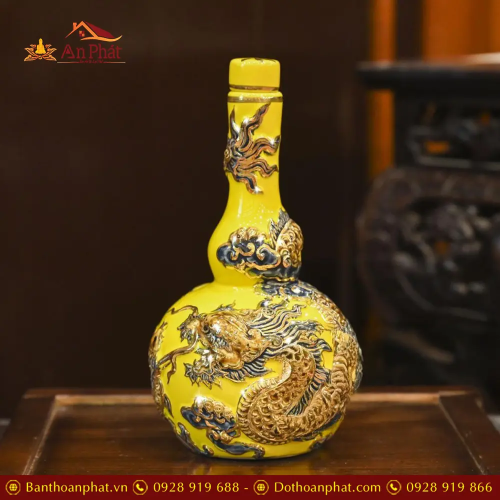 Nậm Rượu Vẽ Vàng Cao Cấp Men Vàng Đắp Nổi DT828