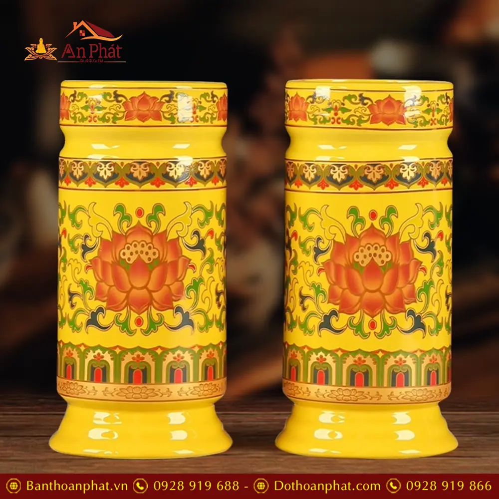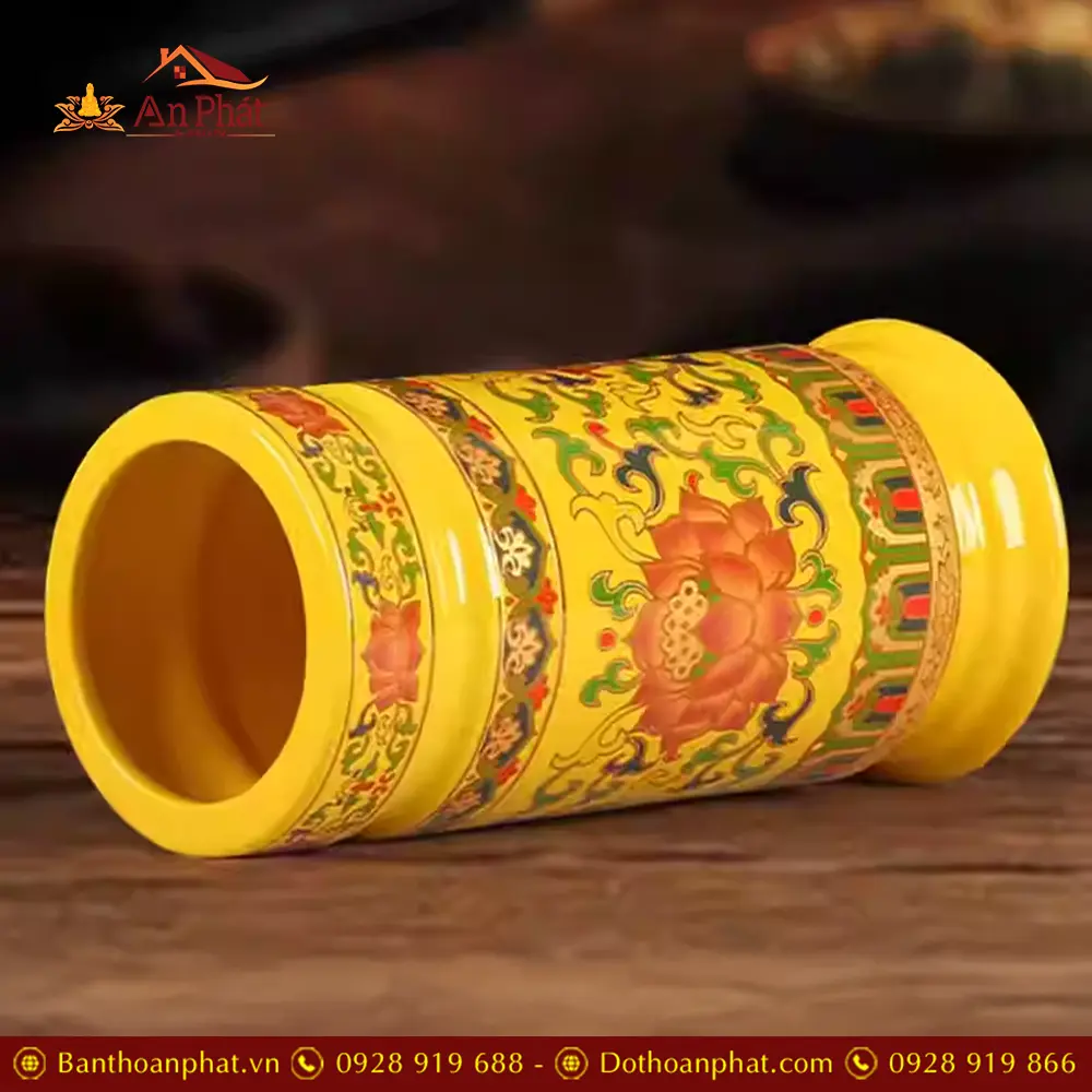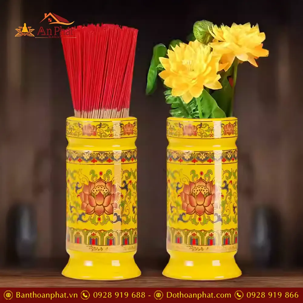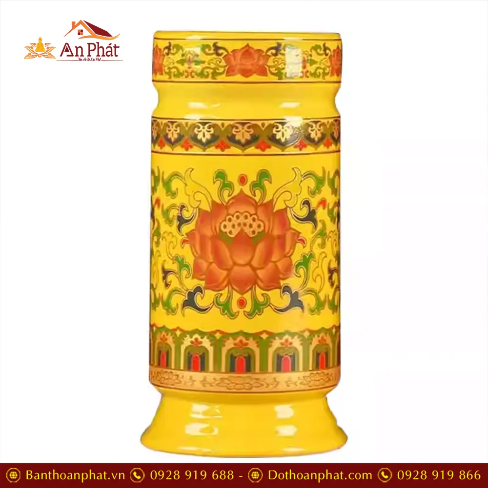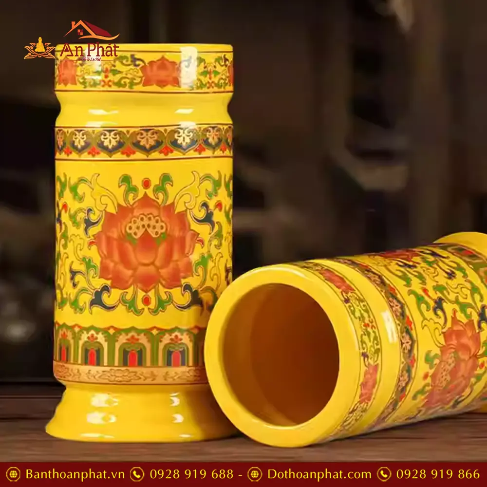 Ống Đựng Hương Sứ Gấm Vàng Hoa Sen DT607