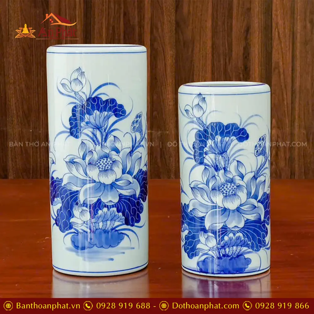Ống Hương Không Chân Men Lam Bát Tràng Mẫu Hoa Sen DT1011