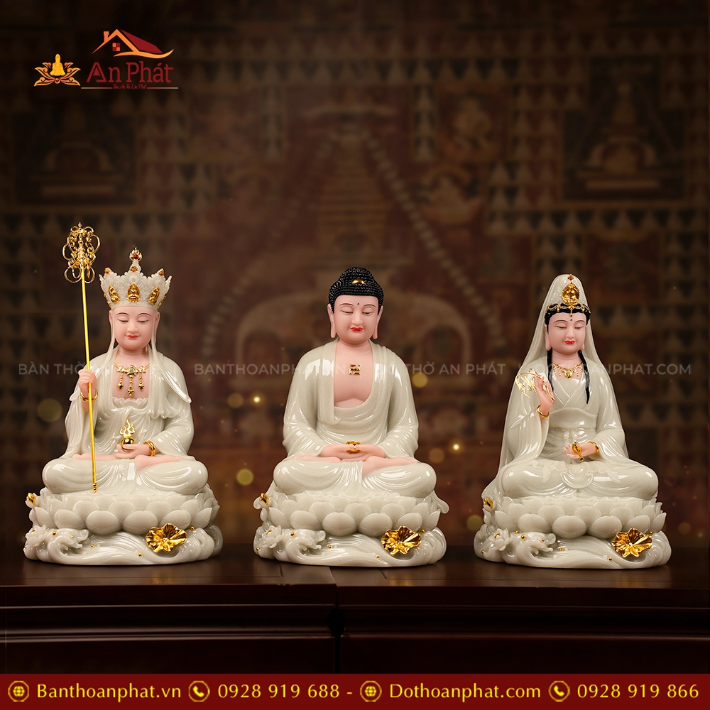 Tôn Tượng Ta Bà Tam Thánh Thạch Anh Men Xanh Ngọc Bảo T2423