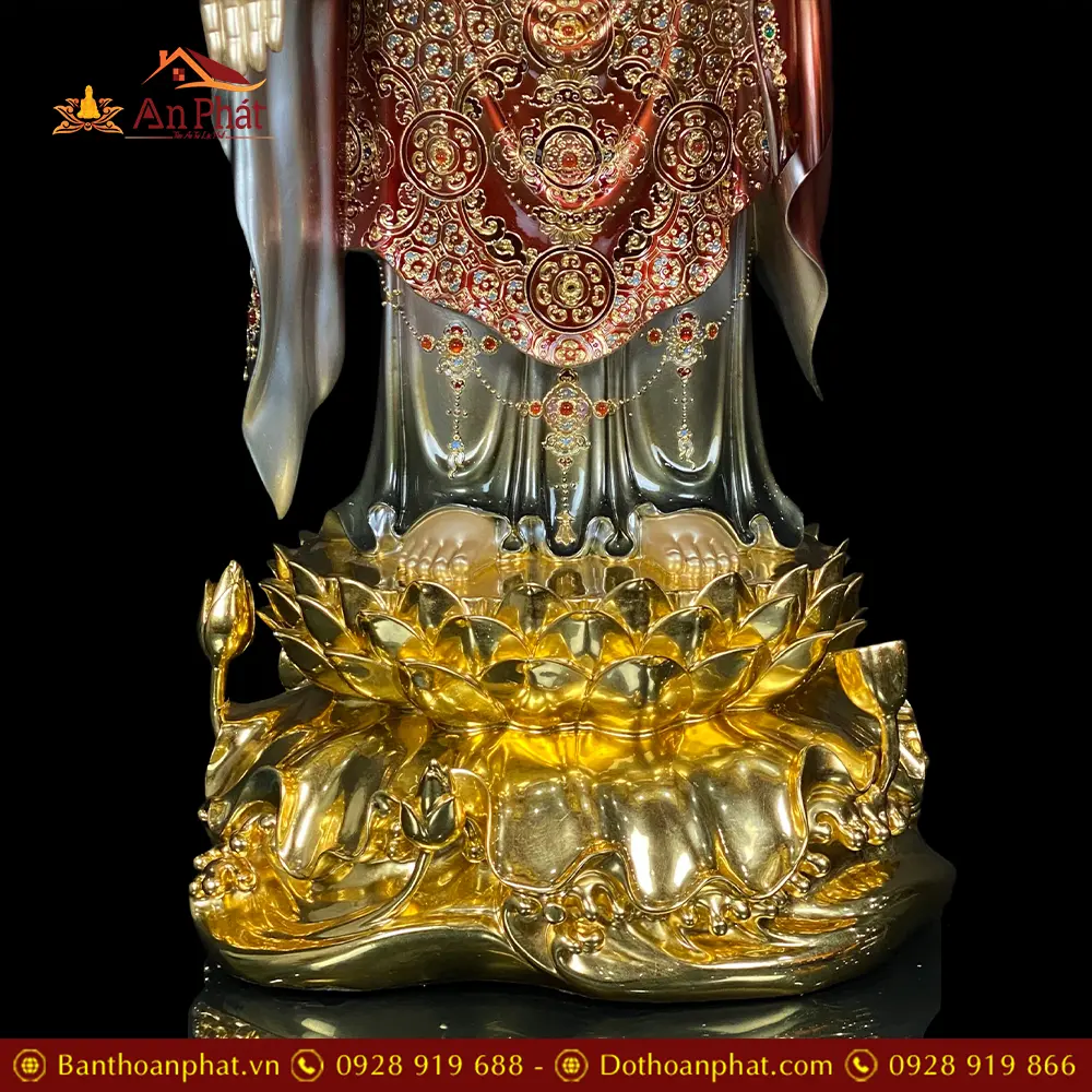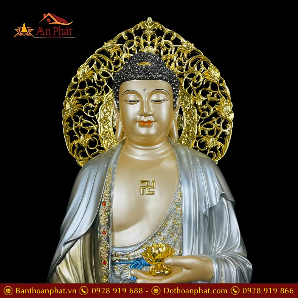 Tượng A Di Đà Bằng Đồng Men Cổ Ấn Bảo Đứng Đế Non Nước Có Lá Bồ Đề T2536