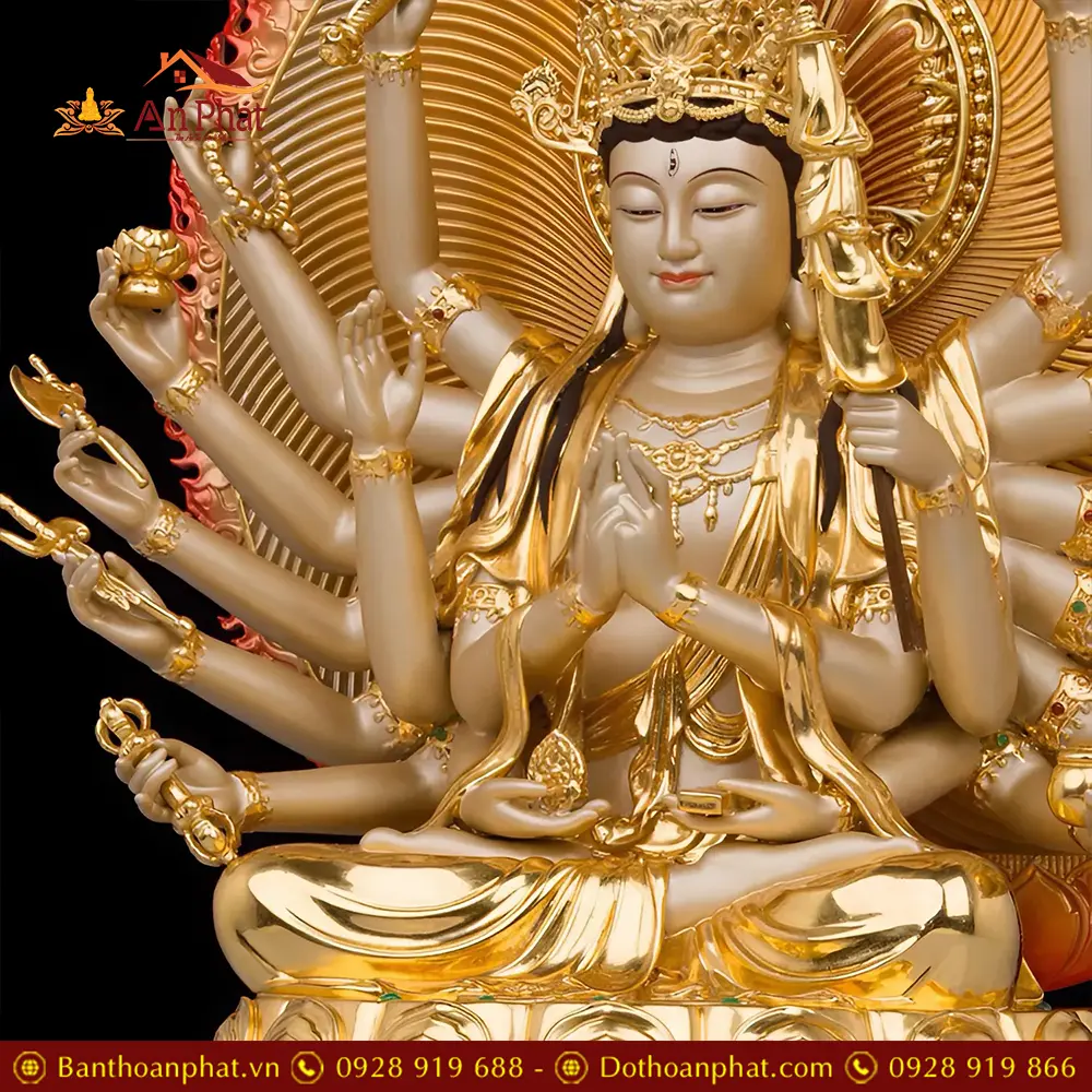 Tượng Bồ Tát Chuẩn Đề Đồng Cao Cấp Dát Vàng Nhập Khẩu T2700