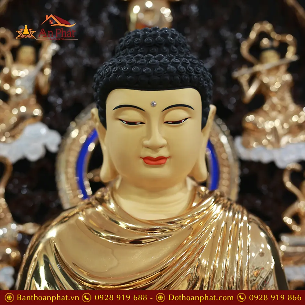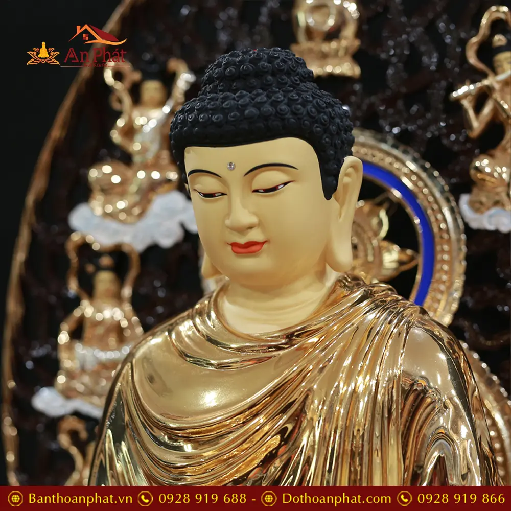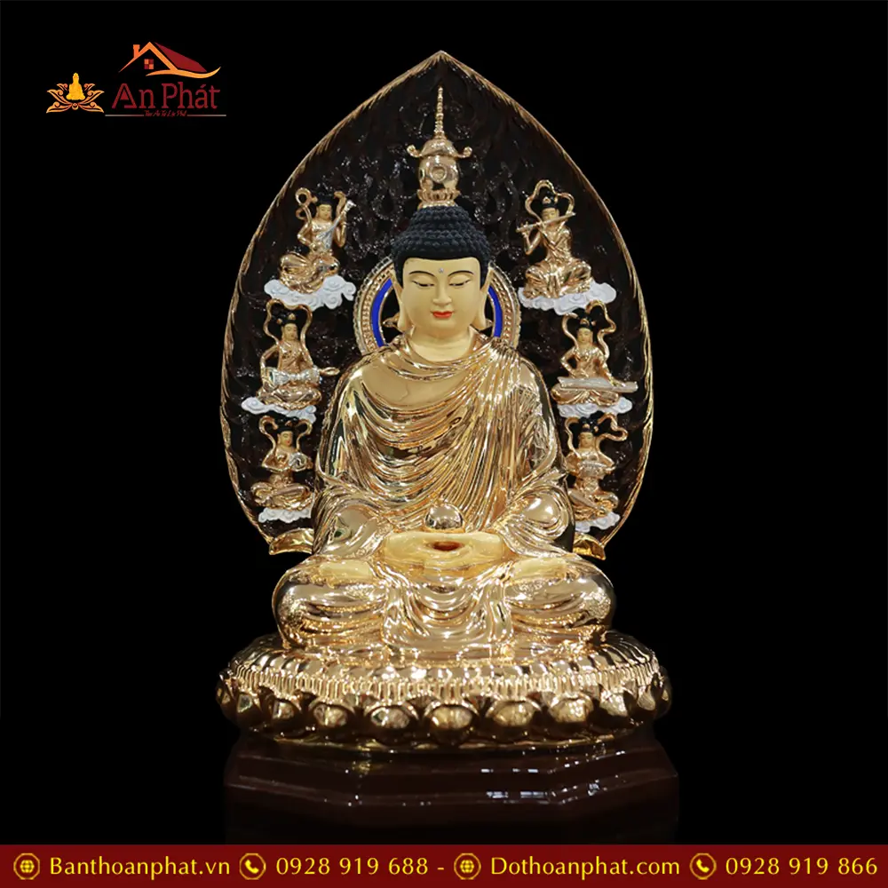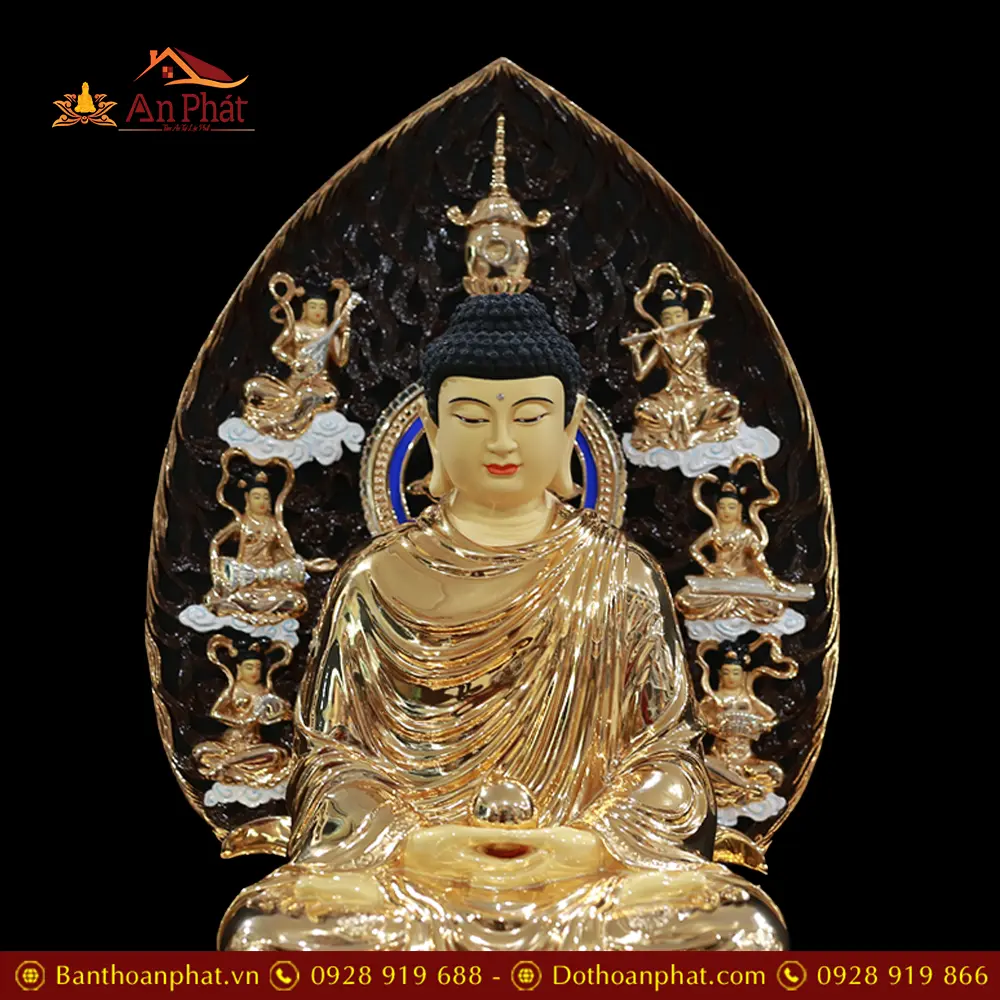 Tượng Bổn Sư Thích Ca Đồng Có Lá Đề 8 Cạnh Ngồi Đài Sen Nhập Khẩu T2631