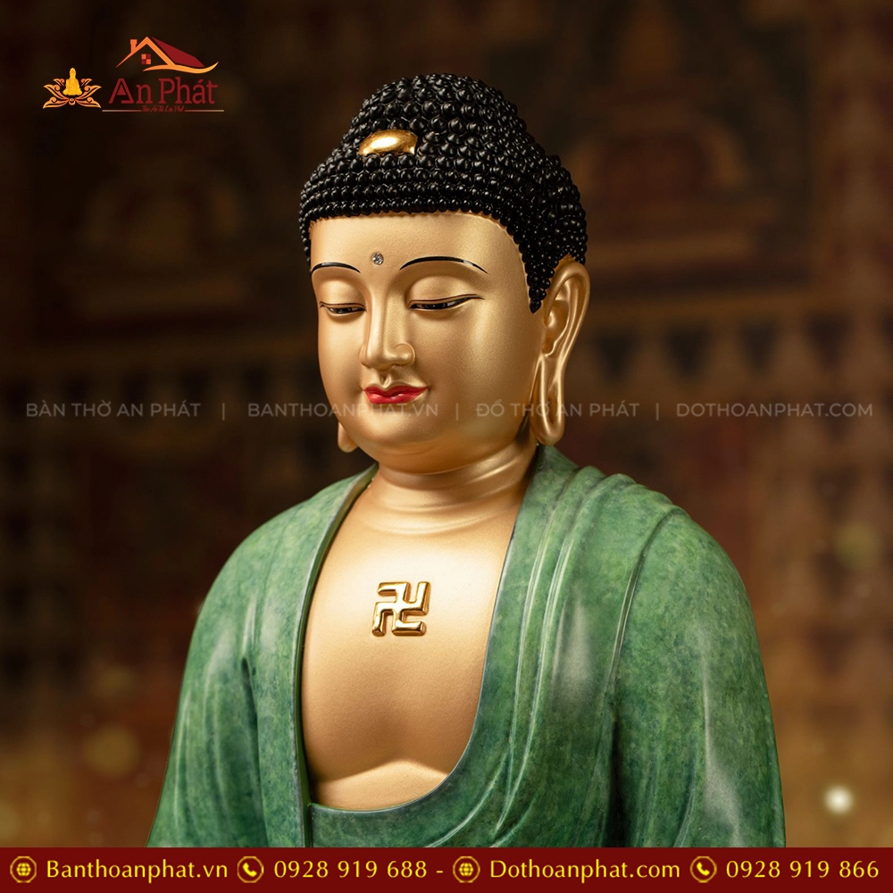 Tượng Bổn Sư Thích Ca Mâu Ni Ngọc Thạch phủ đồng Lục Bảo Vân T2411