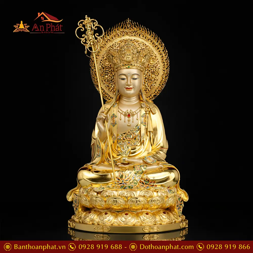 Tượng Địa Tạng Vương Bồ Tát Đồng Dát Vàng Cao Cấp Nhập Khẩu T2650