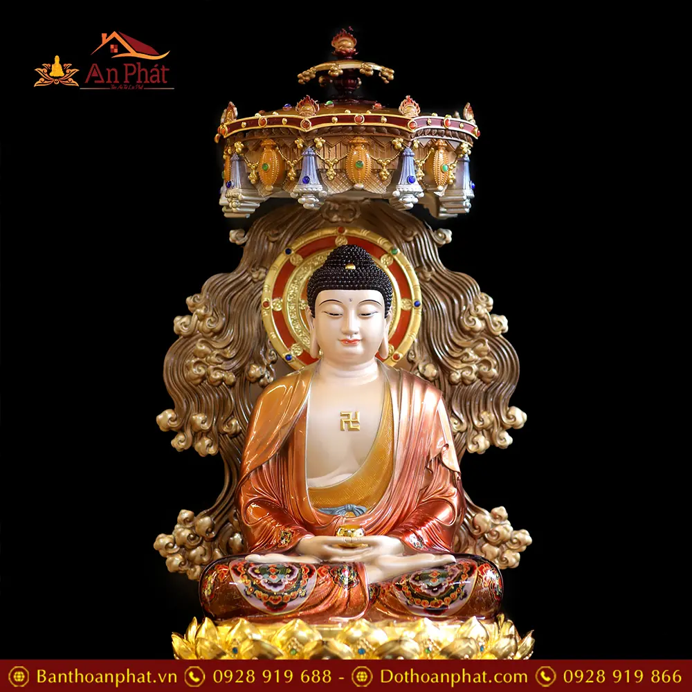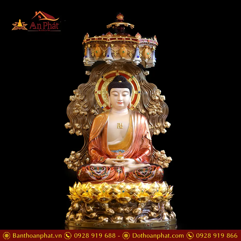 Tượng Phật A Di Đà Đồng Cao Cấp Ngồi Non Nước Có Lọng Che T2535