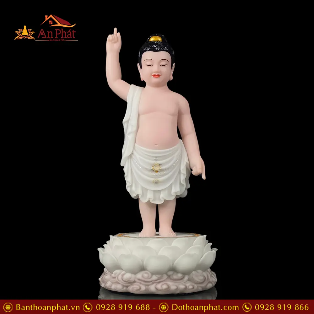 Tượng Phật Đản Sinh Bột Đá Trắng Nhập Khẩu T2750