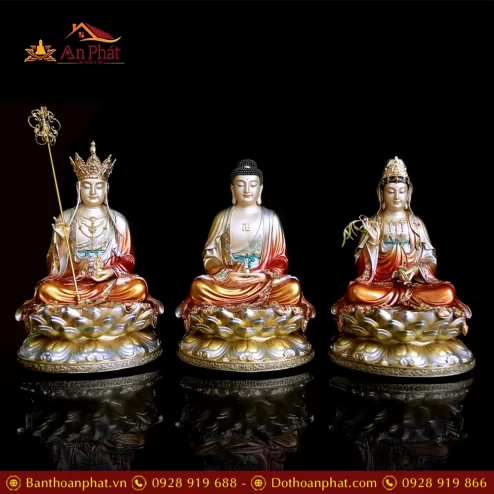Tượng Ta Bà Tam Thánh Đế Mây Bột Đá Sơn Đỏ Cao Cấp T2366