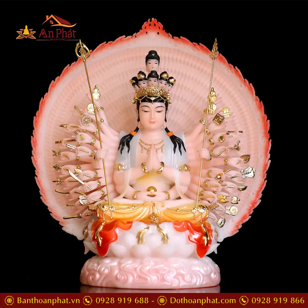 Tượng Thiên Thủ Thiên Nhãn Bột Đá Sơn Phú Quý Cao Cấp Dáng Ngồi Đế Mây T2671
