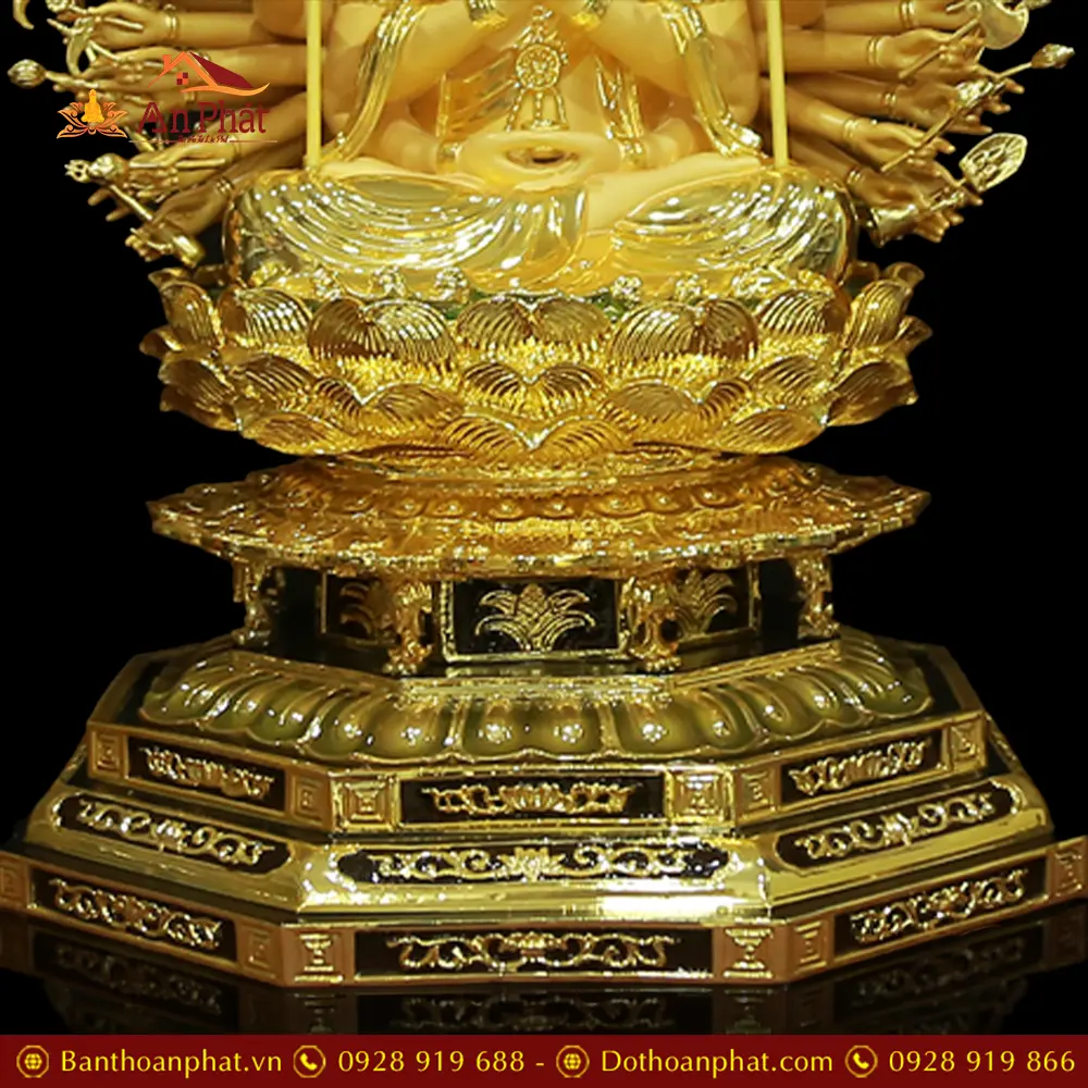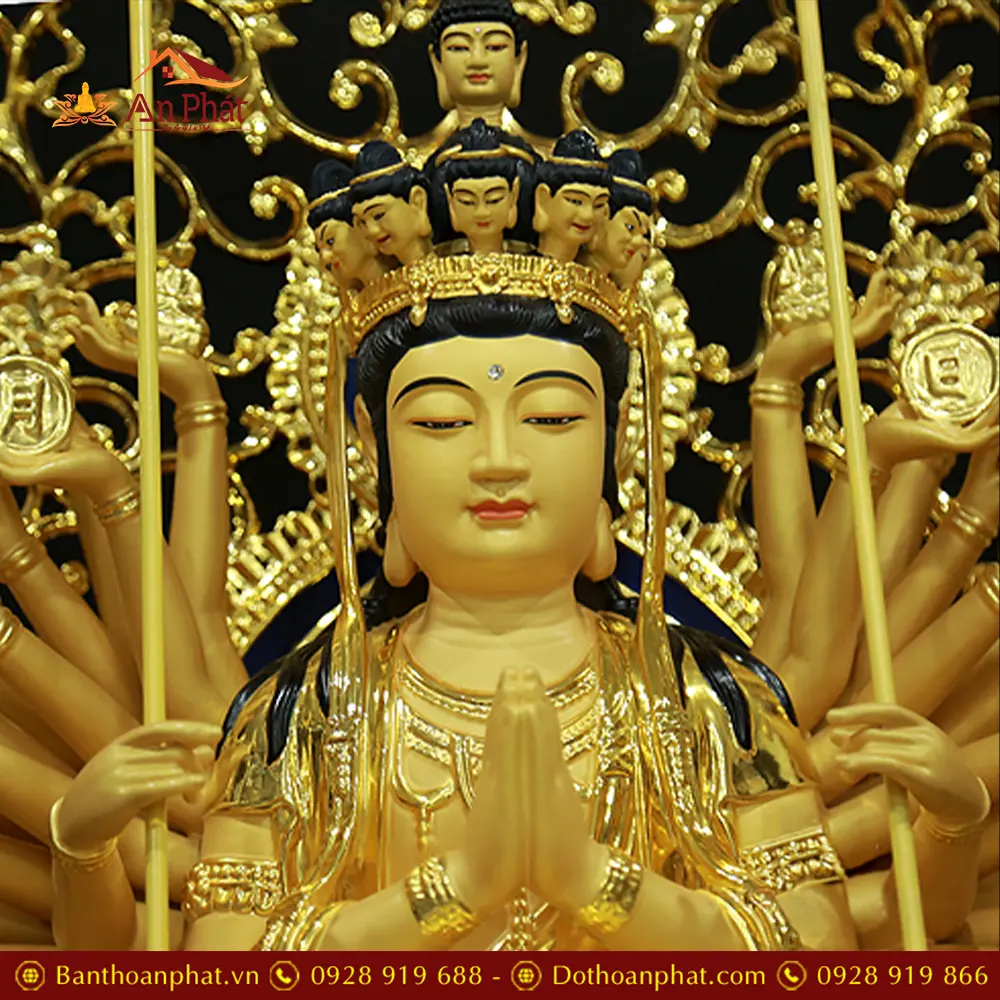 Tượng Thiên Thủ Thiên Nhãn Đồng Cao Cấp Nhập Khẩu Dáng Ngồi Có Lá Đề T2675